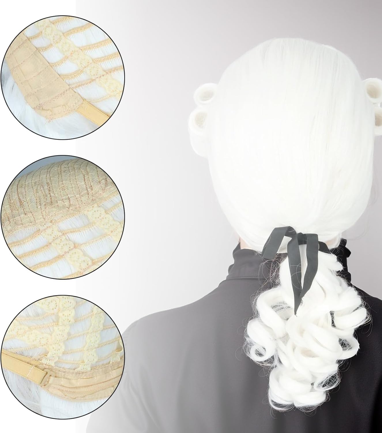 Parrucca da uomo: questa elegante parrucca da uomo in stile rinascimentale e barocco è perfetta per le tue feste di Halloween o Carnevale e ti fa sembrare un giudice o un nobile Materiale di alta qualità: la nostra parrucca da uomo è realizzata con fibre resistenti al calore, parrucca sintetica resistente al calore. Morbido e confortevole, per un aspetto autentico e accattivante Vestibilità comoda: la parrucca da uomo viene fornita con una calotta regolabile e una cinghia elastica, adatta per teste fino a 60 cm, adatta per la maggior parte degli adulti Facile manutenzione: questa parrucca Mozart da uomo è lavabile e ha una base traspirante che offre un elevato comfort. La cura e la pettinatura sono semplici e assicurano che il costume Mozart sia sempre perfetto Versatili opzioni di costume: che si tratti di un costume da giudice cosplay, questa parrucca da uomo aggiunge quel tocco in più a qualsiasi outfit ed è ideale per giochi di ruolo e feste a tema