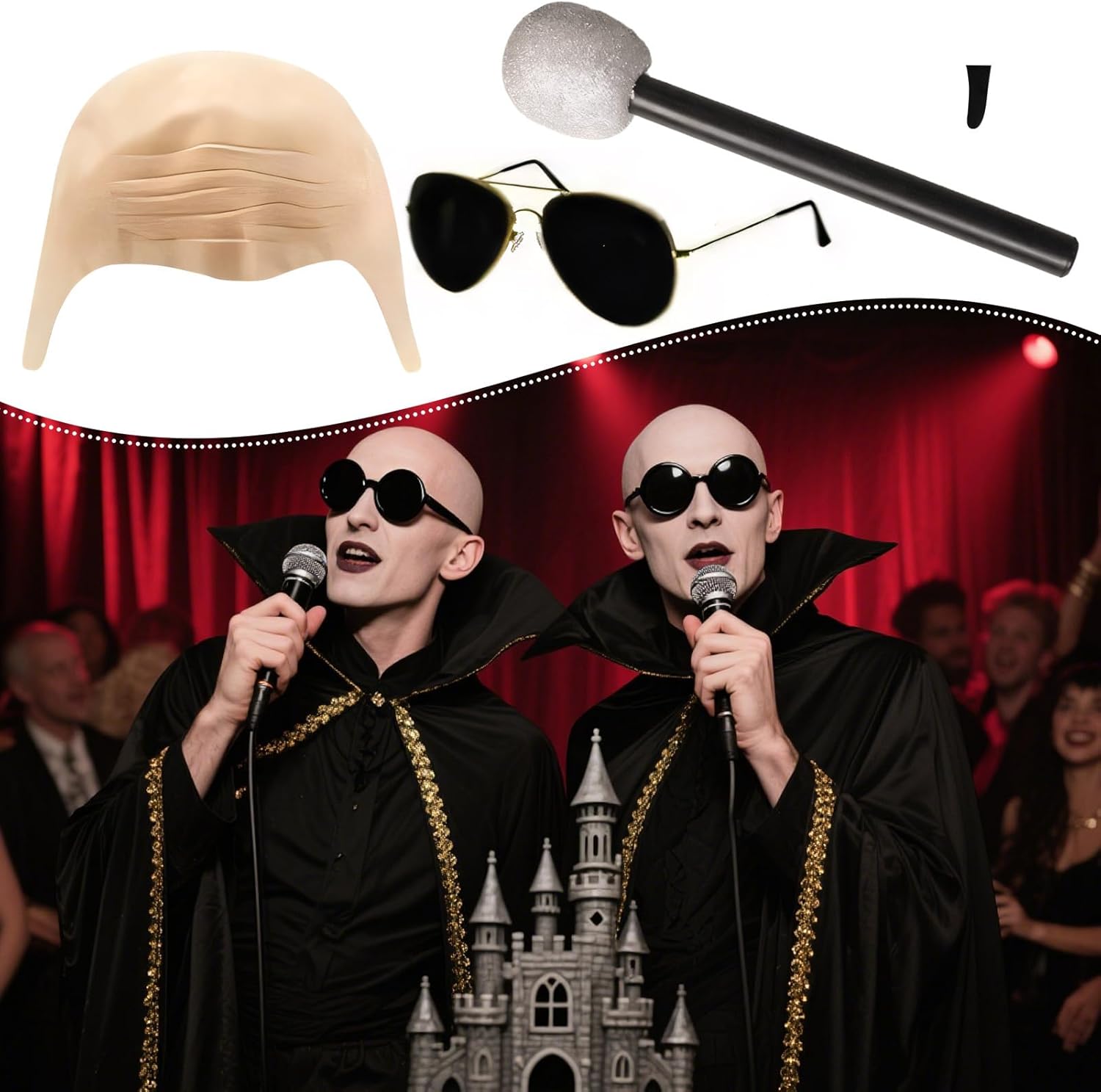 Descrizione prodotto Ottieni stili unici con calotte calve, perfette per gli amanti del cosplay, attori teatrali e partecipanti alle feste. Che si tratti di feste di Halloween, cerimonie di laurea o spettacoli teatrali, questo sofisticato accessorio è adatto a uomini e donne, aggiungendo un tocco divertente ad ogni occasione senza compromettere il comfort o l'intenzione stilistica. Caratteristiche: Peso totale: 111 g. Dimensioni del prodotto: Microfono: circa 5,5 x 27 cm. Peso: 26 g. Materiale: silicone + ABS + schiuma + lattice. Contenuto della confezione: Costume da soffitto calvo x1 Occhiali da sole neri x1 microfono x1 1 toppa nera Nota: A causa delle diverse impostazioni di luminosità e dello schermo, il colore dell'articolo potrebbe essere leggermente diverso da quello dell'immagine. Si prega di consentire 1-2 cm di differenza a causa della misurazione manuale. Avviso di sicurezza Non applicabile