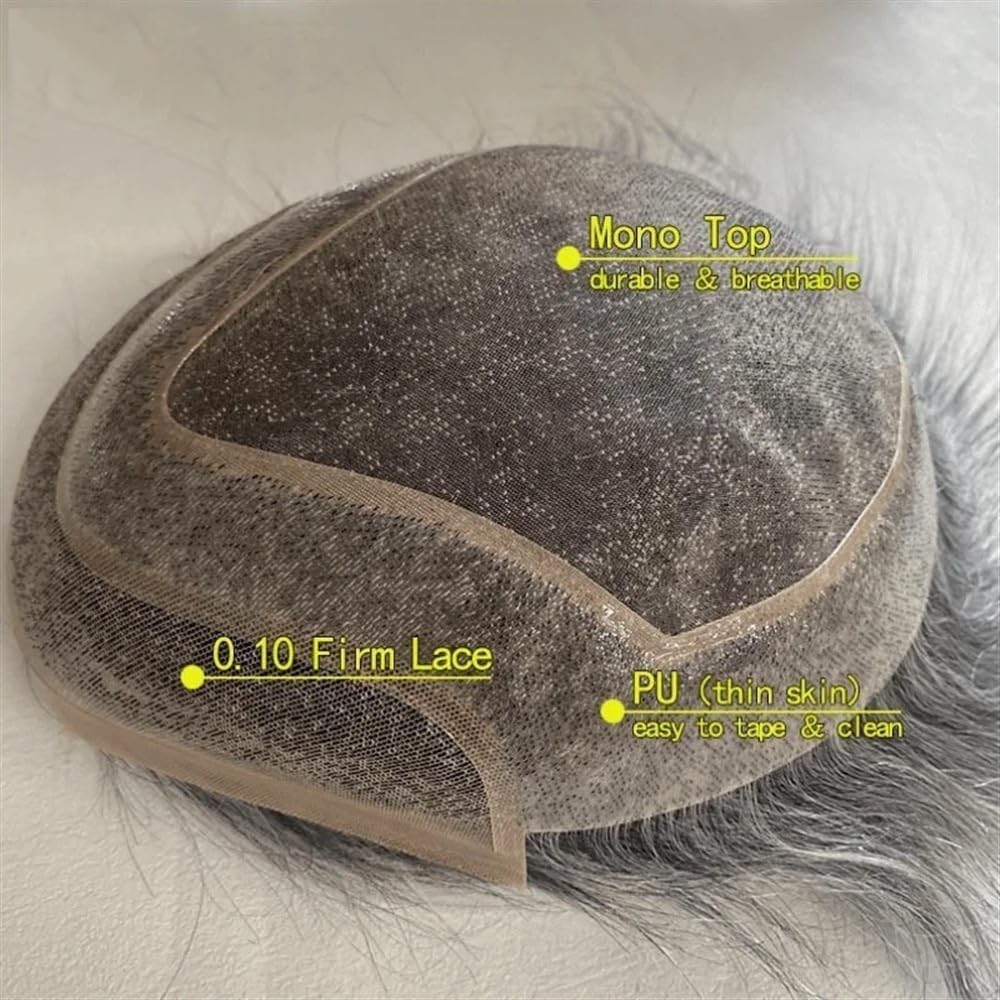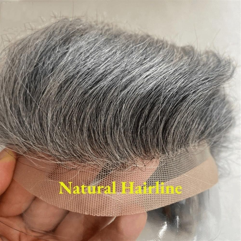 Il partner ideale: le nostre parrucche da uomo saranno il tuo partner ideale. Che si tratti di sport, nuoto, feste, appuntamenti, matrimoni o attività all'aperto, potrai gestirle facilmente. 【Materiale di base della parrucca da uomo】: parte superiore in tinta unita squisita, pelle in poliestere trasparente e parrucca frontale in pizzo 010 rigido per uomo, resistente e traspirante, lunga durata. [Materiale sostitutivo di veri capelli umani]: parrucca da uomo indiana in veri capelli umani, setosa, morbida e liscia, non si aggroviglia e non cade facilmente. Colore dei capelli: 1B80# (1B nero mescolato con l'80% di bianco grigiastro) 【Dimensioni della base della parrucca da uomo】: base per parrucca da uomo da 10" x 8", che può soddisfare quasi tutte le esigenze dei clienti in termini di dimensioni della parrucca. 【Lunghezza del sistema di parrucche in pizzo da uomo】: lunghezza dei capelli 5-6 pollici (misurata dopo averli lisciati), styling libero, densità media al 130%, puoi rimodellarli proprio come i tuoi capelli.