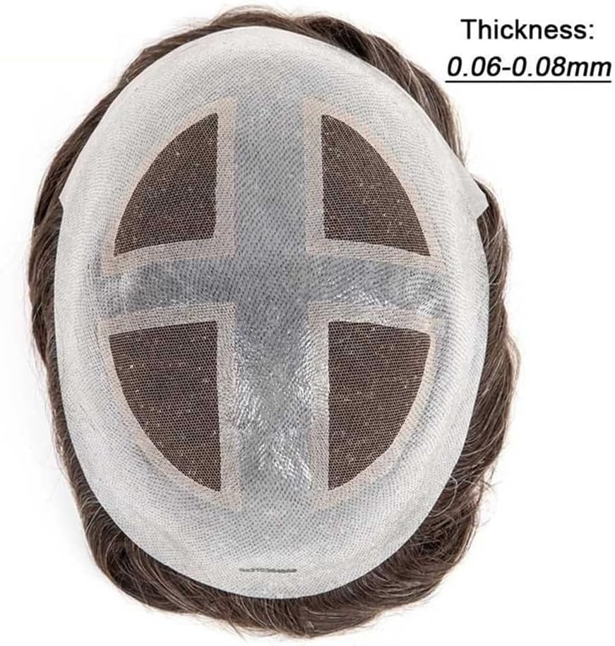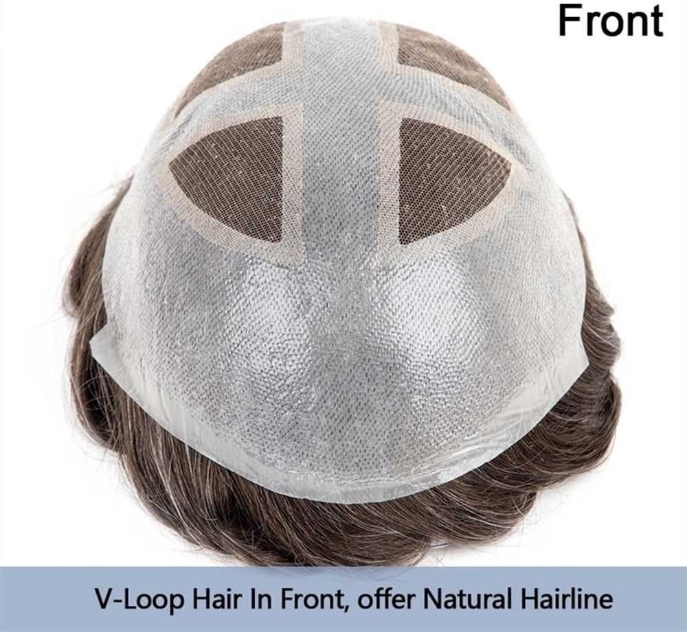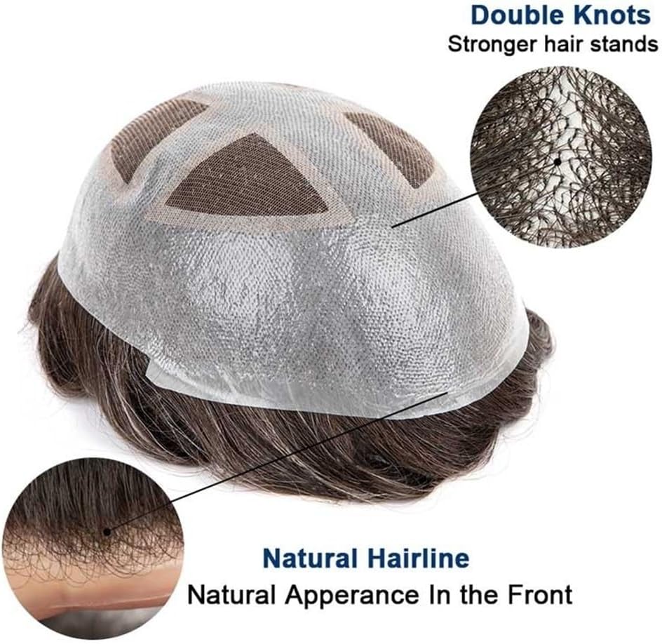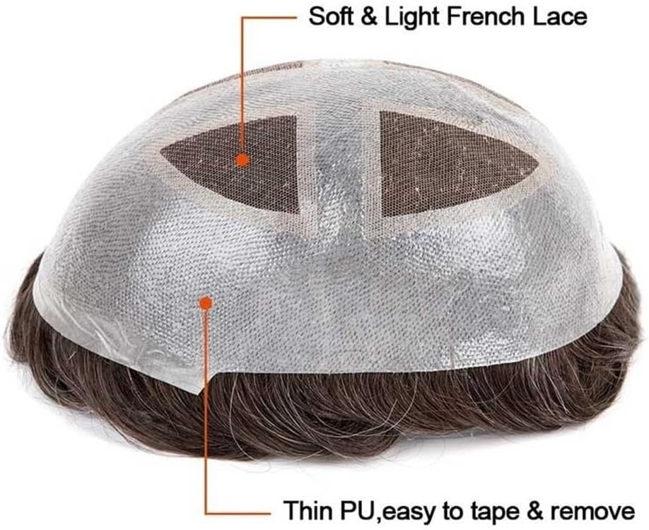 Il partner ideale: le nostre parrucche da uomo saranno il tuo partner ideale. Che si tratti di sport, nuoto, feste, appuntamenti, matrimoni o attività all'aperto, potrai gestirle facilmente. 1. La parte centrale della parrucca da uomo è realizzata in pizzo francese molto resistente, comodo da indossare. La parte circostante è realizzata in poliuretano, facile da applicare e da indossare. È comoda e resistente e può essere utilizzata a lungo. 2. Sistema di capelli veri indiani al 100%, morbidi e naturali, senza nodi, senza perdita di capelli. Capelli lunghi 15 cm, lisci, possono essere tagliati liberamente. 3. La base misura 8x10 pollici, dimensioni sufficienti per la maggior parte degli uomini che soffrono di perdita di capelli. Densità media leggera del 4,120%, proprio come i capelli veri che crescono dal cuoio capelluto, dall'aspetto molto naturale. Acconciatura libera, adatta a qualsiasi stile.