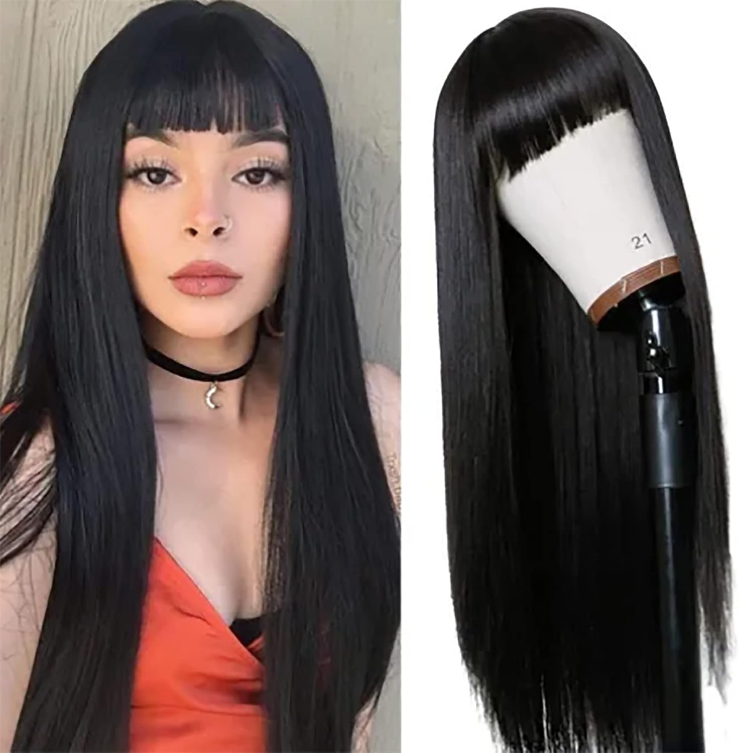 Aspetto elegante: lunga parrucca dritta con frangetti ordinati, nero opaco, niente sbiadimento, ti fanno sembrare più alla moda dopo averlo indossato, adatto a tutte le tonalità della pelle, ideale per le donne. Scenari multipli applicabili: la parrucca dritta lunga nera è applicabile per la vita quotidiana, feste a tema, cosplay, Halloween, concerti, matrimoni, appuntamenti, ecc. Design regolabile: design della fibbia per la circonferenza della testa, la tenuta può essere regolata liberamente per adattarsi alla circonferenza della propria testa, non facile cadere e si annoia. Può essere tagliata: la parrucca è disponibile in uno stile base. Puoi tagliarlo a piacimento o dargli un altro stile personalizzato per creare acconciatura che ti distingue. Spessore e peso adeguati, facile pettinare. Capelli sintetici ad alta temperatura: la parrucca nera lunga è realizzata con sintetici ad alta temperatura, sicuri e resistenti al calore e flessibile, inodore e per l'uso.