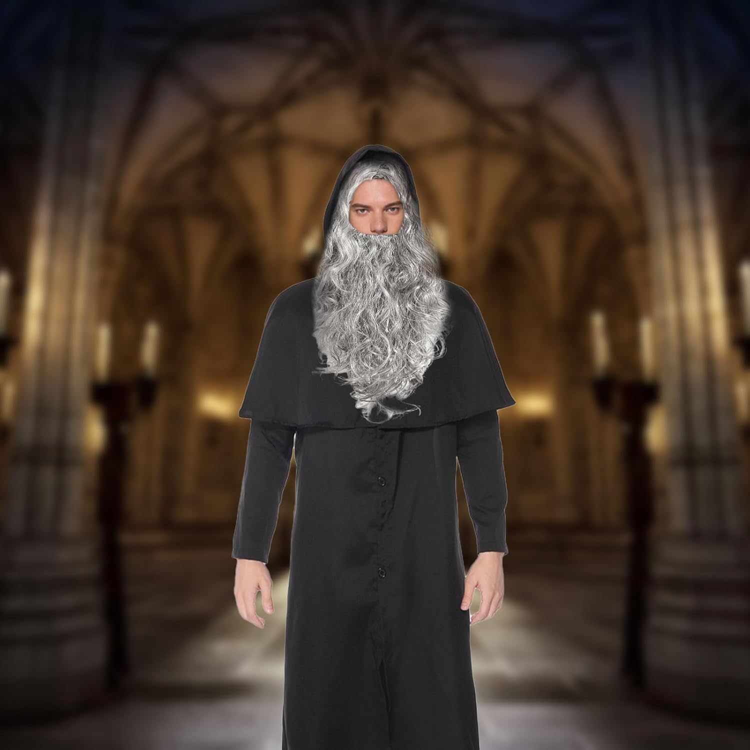 Parrucca e barba in maschera: questi set di parrucche e baffi sono ideali per qualsiasi spettacolo, cosplay di maghi e personaggi medievali, che si abbinano perfettamente a feste di scena, TV, film e costumi. Alta qualità: realizzato con fibre sintetiche, questo set di parrucca e barba è morbido, confortevole e realistico. Le fibre sono di facile manutenzione, garantendoti la possibilità di goderti questo set per molte festività natalizie a venire. Facile da indossare: la barba è dotata di un elastico che può essere facilmente regolato per adattarsi a diverse forme e dimensioni del viso. È comodo da indossare e non scivola o cade facilmente. Perfetto per il gioco di ruolo: la parrucca lunga e riccia e i baffi sono ideali per cosplay di celebrità, comici o membri di gruppi di ragazzi, aggiungendo una sensazione affascinante e fresca al tuo costume. Regalo perfetto: la parrucca da uomo è un accessorio indispensabile e un regalo meraviglioso per i tuoi amici e la tua famiglia in occasione di compleanni, Halloween e Natale, lasciando ricordi indimenticabili e portando un grande successo alla tua festa