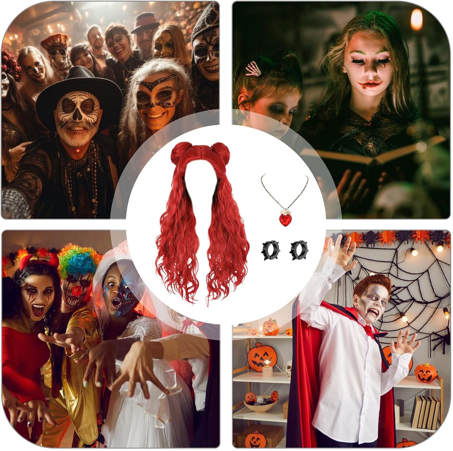 Vestibilità Regolabile: Design con fibre sintetiche morbide e fascia elastica regolabile, assicura un adattamento personalizzato senza punti di pressione, ideale per lunghe ore di utilizzo Stile unico: Ottieni un look totale con parrucca lunga rossa, dettagli costumi classici, collana a cuore e orecchini stile punk per celebrazioni tematiche memorabili 3. Design Caratteristico: Acconciatura fedele al personaggio ottenuta con texture stratificate distintive, struttura ottimizzata per comfort e stile in ogni evento festivo. Comodità Assoluta: Progettata per essere riposta facilmente e senza di styling, include scomparti organizzatori interni ed è lavabile in lavatrice con tessuto a rapida asciugatura, garantendo preparazione rapida e uso istantaneo. Compatibilità Multioccasione: Progettata per adattarsi a molteplici scene, adatta a cosplay festival e feste a tema grazie alla ritenzione della forma pieghevole, assicurando portabilità e prontezza per spettacoli o uso quotidiano