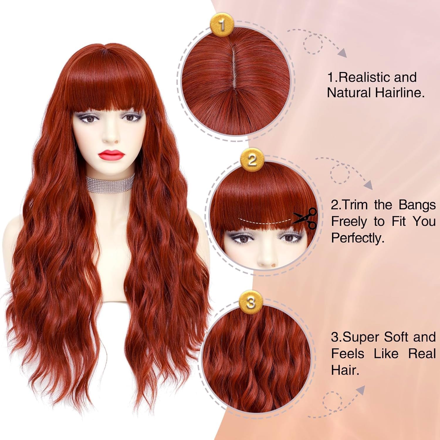 Parrucche resistenti al calore di alta qualità: questa parrucca da donna alla moda è realizzata al 100% in fibra sintetica di seta giapponese ad alta temperatura e squisita lavorazione artigianale, che offre un'eccellente resistenza alle alte temperature, resistenza all'usura e lunga durata. È un ottimo accessorio per l'uso quotidiano e per una festa cosplay. Naturale e confortevole: la parrucca di questa donna ha un aspetto naturale ed è morbida, delicata sulla pelle, confortevole e traspirante, non facile da aggrovigliare, non facile da cadere, il che si adatta perfettamente ai vestiti moderni, ti rende pieno di fascino e diventa il punto focale della folla. Taglio regolabile e fai da te: questa parrucca da donna è dotata di una rete traspirante al 100% di rose e una cuffia sporgente, che può essere regolata in base alla circonferenza della testa ed è molto comoda da indossare. La frangia e la lunghezza dei capelli possono essere adattate alle diverse esigenze. Economica e ampiamente utilizzata: questa dimensione della parrucca è adatta per la maggior parte delle persone, adatta per l'uso tutto l'anno, si adatta a diversi tipi di abbigliamento, idea per donne e ragazze. Questa parrucca alla moda dall'aspetto naturale è facile da indossare e da mantenere. È ampiamente utilizzato nell'abbigliamento quotidiano, al lavoro, in discoteca, Halloween, cosplay, Natale, matrimoni, feste in maschera, ecc. 【Superiorità】 Il posto magico per la parrucca è che ti rende più inconfondibile come il trucco e meriti di averla.
