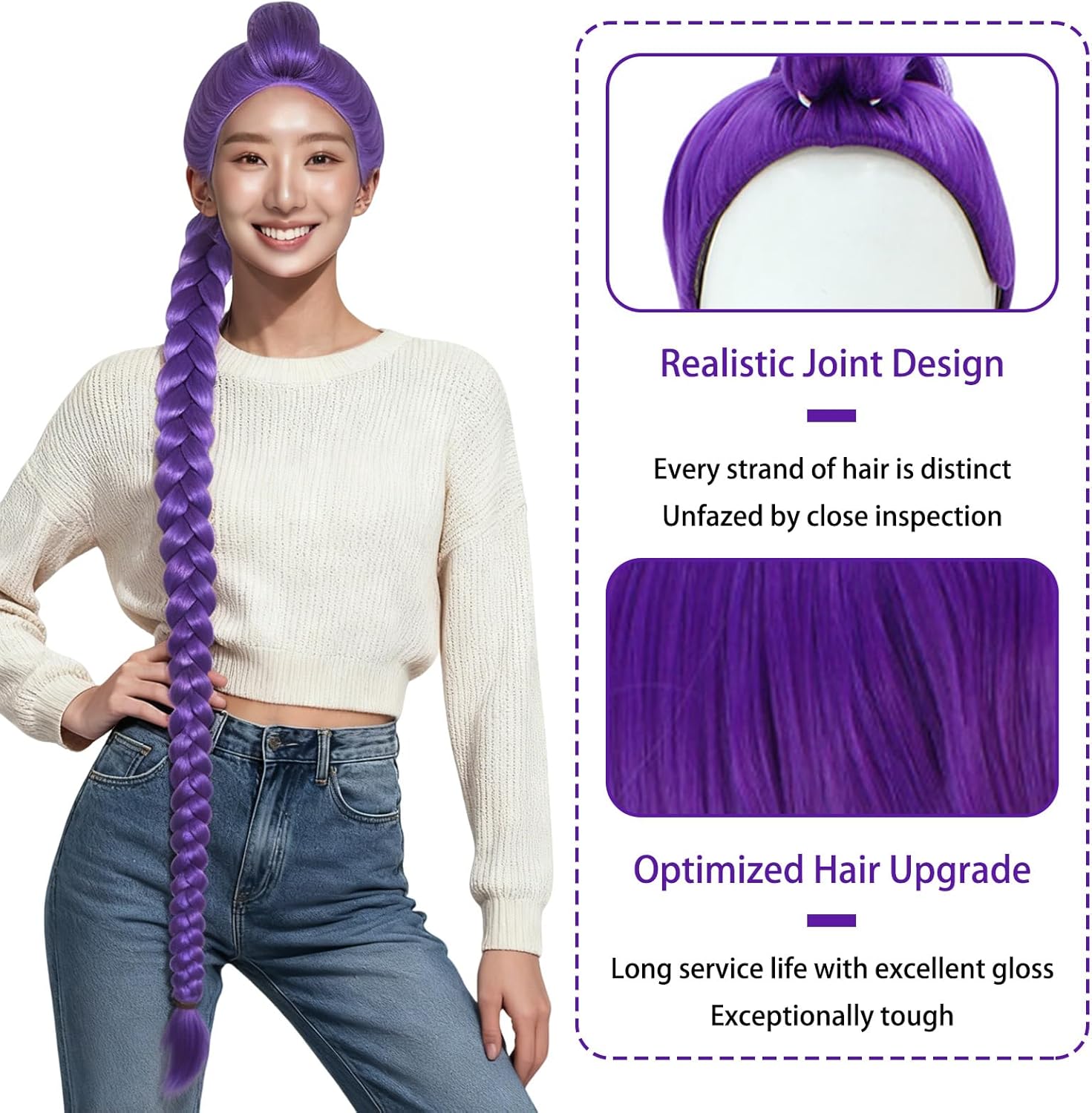 Stile parrucca: 1 parrucca + 1 berretto, la parrucca e la treccia sono due parti separate e sulla treccia sono presenti delle clip per fissarla. Puoi sofficere facilmente la parrucca con le dita. Fibre premium: le parrucche pruple sono realizzate con fibre sintetiche ad alta temperatura, che risultano morbide, confortevoli e brillanti per un look anime naturale ma drammatico Taglia unica: le cinghie elastiche regolabili e il cappuccio interno traspirante garantiscono una vestibilità sicura e confortevole per la maggior parte delle dimensioni della testa (19,6''-23,6''), il cappuccio interno in rete è realizzato in pizzo rosa di alta qualità, traspirante ed elastico, facile da indossare Perfetto per il cosplay: questo costume da parrucca ha un design unico che è davvero perfetto per Halloween e giochi di ruolo, assicurandoti di distinguerti nelle tue scene di cosplay Ampio utilizzo: perfetto per giochi di ruolo con personaggi cinematografici, Halloween, concerti, feste a tema, fumetti, appuntamenti, uscite serali, occasioni speciali, Natale, ecc.