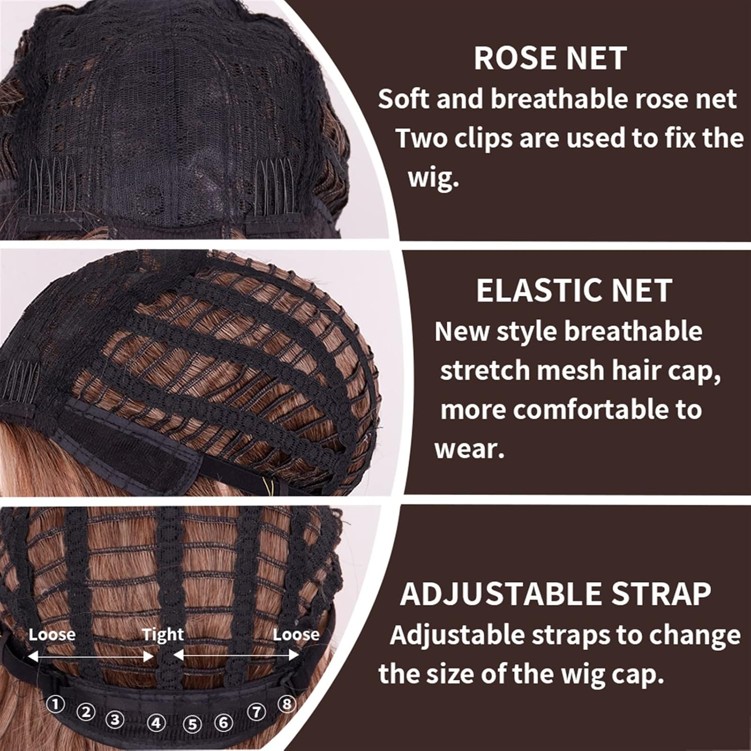 【Concetto di design】Questa è una parrucca castana sfumata ondulata lunga 28 pollici, realizzata in fibra sintetica ad alta temperatura. È morbida e spessa, non perde capelli, non si aggroviglia, è durevole e resistente. 【Attaccatura dei capelli naturale】La parrucca lunga e ondulata sembra come i tuoi capelli, ha un nuovo tipo di piccolo cuoio capelluto in pizzo, ma non è una parrucca frontale in pizzo, quindi ha un'attaccatura dei capelli più naturale rispetto ad altre parrucche economiche. Abbiamo effettuato un trattamento speciale sulla parte dell'attaccatura dei capelli per renderla più soffice e naturale. 【Delicato sulla pelle】La retina per capelli traspirante da 22,5 pollici e il materiale sintetico ad alta temperatura garantiscono comfort per tutto il giorno sulla testa senza causare prurito o allergie, e due cinghie di regolazione possono adattarsi a diverse dimensioni della testa. 【Ampiamente usato】Questa parrucca lunga e ondulata con riga centrale ha riccioli naturali e colori splendidi, rendendola la scelta ideale per varie occasioni. Adatta per feste, styling quotidiano, festival, matrimoni e altre occasioni. Sarai sicuramente radiosa in queste occasioni.