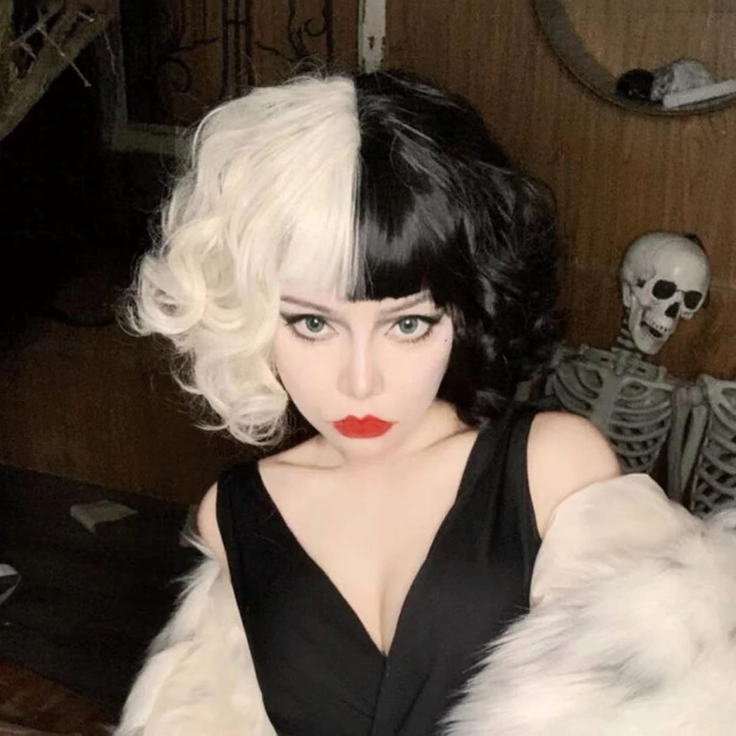 [Materiali di alta qualità] Realizzata in fibre sintetiche resistenti al calore, la parrucca di Crudelia è morbida, naturale e realistica, lavabile ma non tingibile. Tieni presente che un po' di capelli fluttuanti cadranno quando la indossi per la prima volta, per favore non non preoccuparti, questo è normale. 【Utilizzo quotidiano e cosplay】: abito dall'aspetto naturale per la vita quotidiana, feste, costumi, celebrità, Halloween, giorno di San Patrizio, cosplay o qualsiasi altra occasione. Il design elegante ti rende più bello. 【Parrucca tagliabile】 La lunghezza della frangia o dei capelli può essere tagliata secondo necessità. Che tu abbia i capelli lunghi o corti, questa parrucca moderna è perfetta per te, appositamente progettata per ogni bella te. 【Cosplay Must-have】Il Carnevale è dietro l'angolo, sei pronto? Ottieni questa parrucca per rendere più colorati i tuoi concerti, i costumi delle feste, il giorno di San Patrizio, le feste a tema, i matrimoni, i giochi di ruolo e gli appuntamenti. 【Circonferenza della parrucca】57 cm, con spalline regolabili, adatta per la maggior parte degli adulti. "Stella vestirsi.