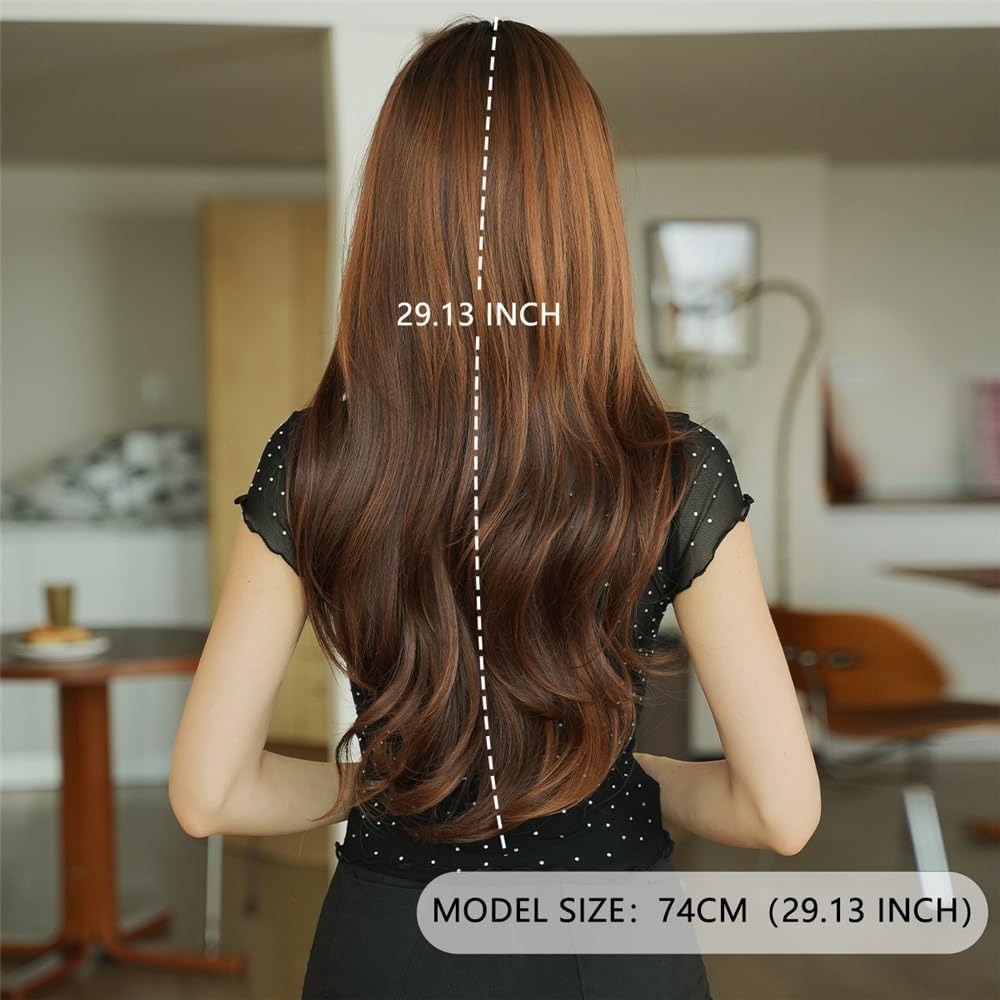 Parrucca castana lunga con capelli sintetici di alta qualità, riga media. Attaccatura dei capelli realistica. Piccola cuffia for parrucca in pizzo traspirante. Aderente ma comoda, leggera, impedisce lo scivolamento e mantiene la pelle fresca. Il color tè color arancio dolce si adatta a tutti i tipi di pelle. Resistente al calore fino a 180°C, consente diverse acconciature. Parrucca lunga in pizzo pre-pizzicata e pre-modellata. Cinghie regolabili for una vestibilità personalizzata. Occasioni: queste parrucche sono adatte per tutti i giorni, feste, costumi, celebrità, Halloween, cosplay o qualsiasi altra occasione tu voglia