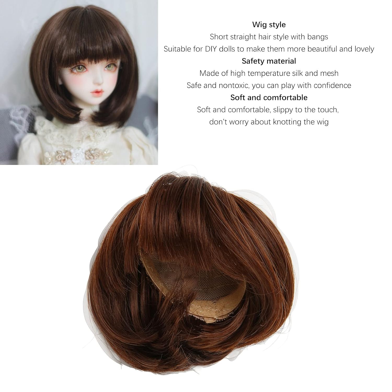 Parrucca per bambola dritta corta con frangia, sintetici in scala 1/6, tappo di parrucca del cuoio capelluto, fibre da 300 ° F resistenti al calore per la testa da 15,5-17 cm (Marrone scuro)