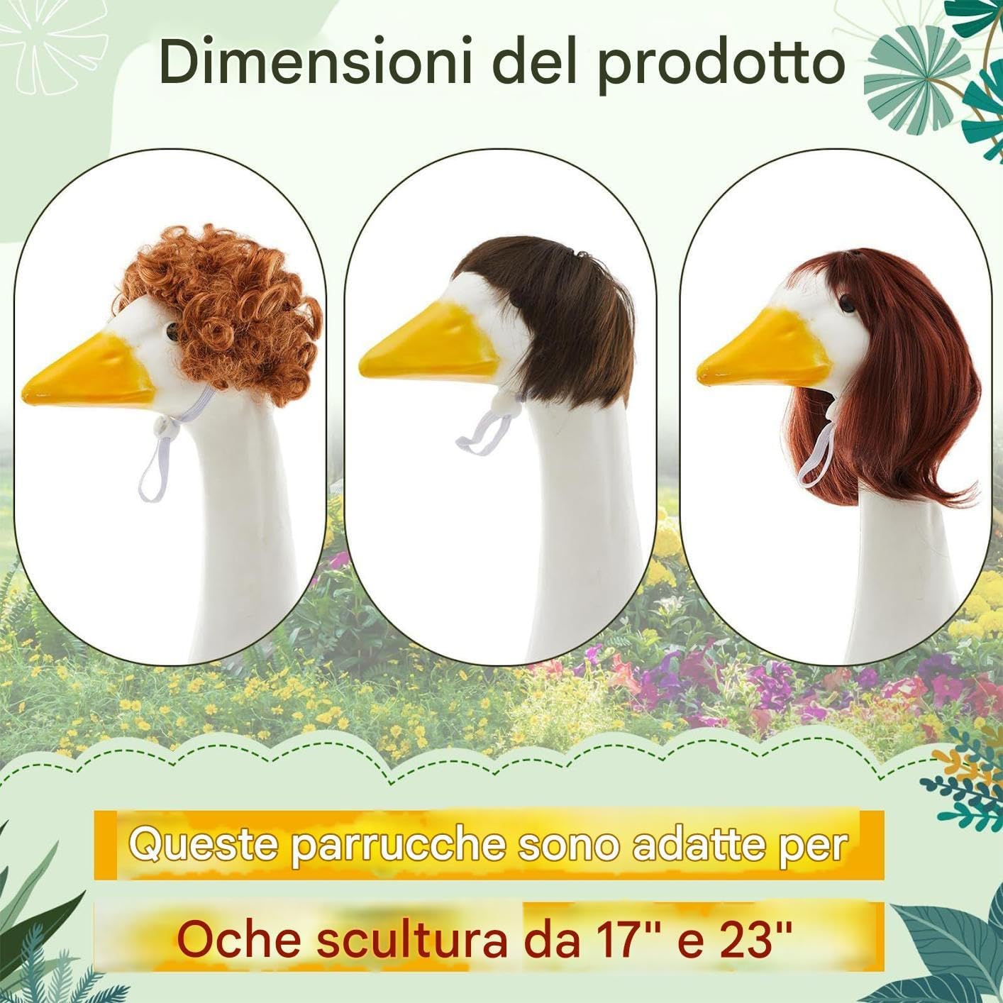 Rinnova l'arredamento del portico: solleva l'atmosfera e aggiungi carattere con le parrucche di oche di portico stravagante, migliorando il fascino e l'individualità del tuo spazio all'aperto. Le parrucche sono affascinanti Forme diverse: offrendo 3 stili unici, queste parrucche di oche sono ideali per portare fascino e carattere nella tua area esterna, consentendo una regolazione versatile e stagionale Versatilità regolabile: flessibile con fascia elastica e fibbia regolabile, questa grande parrucca alle oche portici offre una misura perfetta per diverse dimensioni e forme della testa Longevità assicurata: realizzata con eccellente fibra di poliestere, fornendo una sensazione morbida e che non si sbiadirà o si rompe facilmente, promettendo un uso di lunga durata. Le parrucche alle oche del portico sono robuste Ampiamente usato: rivitalizzare lo spazio all'aperto senza sforzo con le parrucche di oche del portico, trasformando il prato, il portico, il giardino, la terrazza o il cortile in un pittoresco paradiso