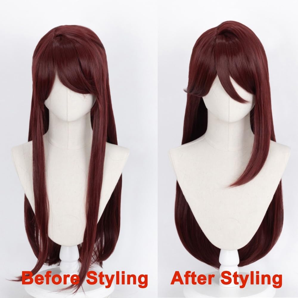 Materiale: questa parrucca per cosplay è realizzata al 100% in fibra sintetica resistente alle alte temperature, resistente al calore, all'usura e durevole. Dimensioni: questa parrucca per cosplay è adatta per circonferenza della testa di 50-60 cm. Contenuto della confezione: 1 parrucca + 1 cuffia per parrucca. Senza accessori per capelli. La parrucca che hai ricevuto non è stata acconciata e deve essere restyling da solo. Regolabile: questa parrucca per cosplay anime è dotata di elastico e fibbie, in modo da poterla regolare in base alle dimensioni adeguate per adattarsi alla testa. Occasione: questa parrucca anime è molto adatta per cosplay, feste in maschera, giochi di ruolo, Halloween, Natale, esposizioni anime, fumetti, carnevale, festival, uso quotidiano, lavoro, club, foto, ecc.