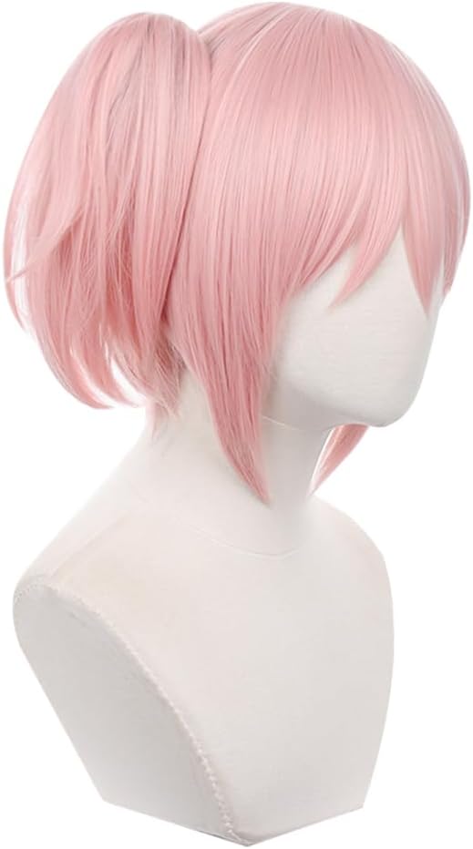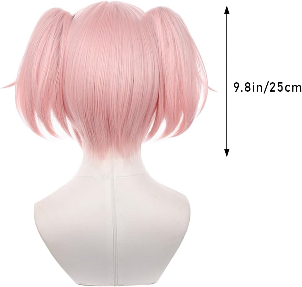Parrucca per cosplay anime rosa con due fiocchi coda di cavallo parrucca resistente al calore parrucca per feste in costume di Halloween