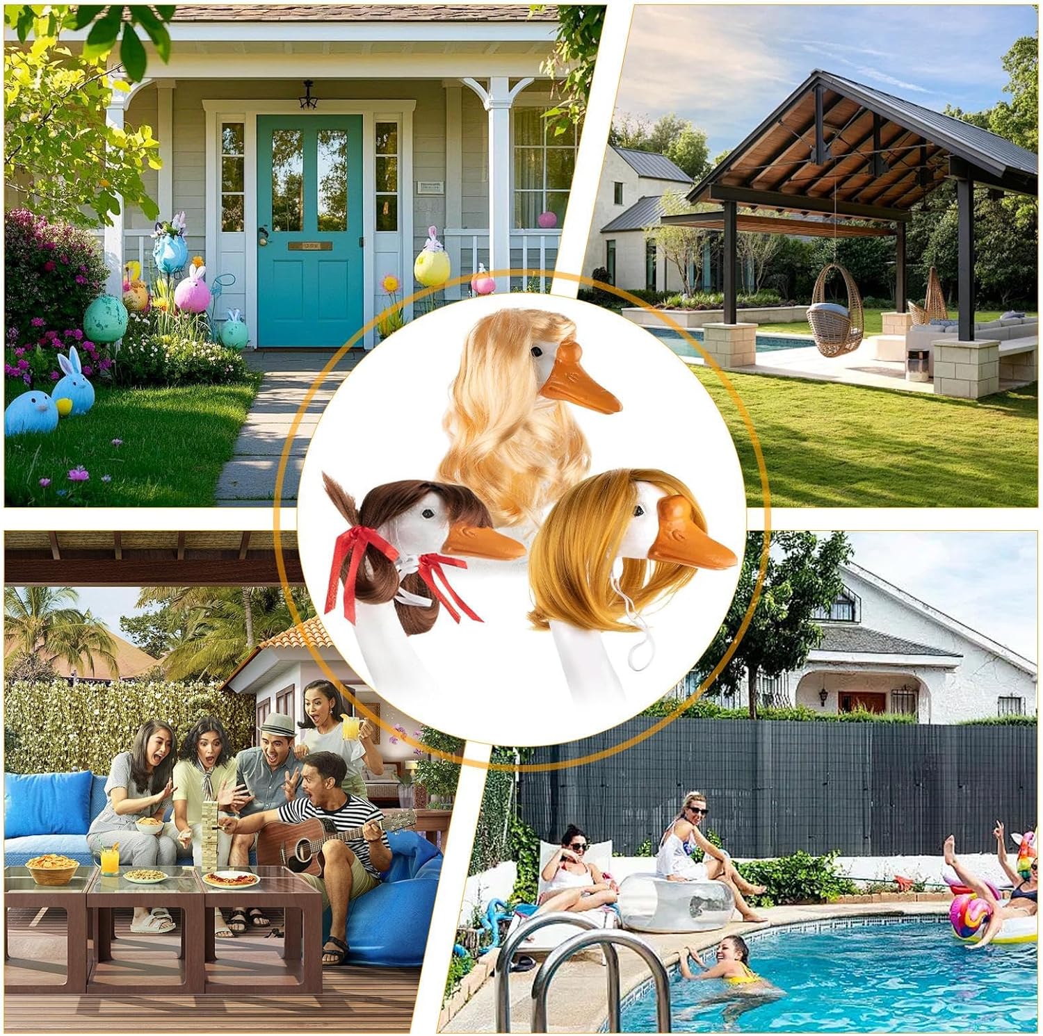 Difficile da Danneggiare: Prodotta con materiale UV resistente e fibra sintetica robusta, questa decorazione esterna ha colori indelebili che preservano vivacità e integrità in tutte le stagioni, ideale per esposizioni durature Opzioni Versatili: Le parrucche bob ondulato offrono molteplici possibilità creative come decorazioni stagionali e costumi festività, valorizzando allestimenti per ogni evento con semplicità Tocco creativo con parrucche: Trasforma qualsiasi decorazione da portico in un elemento accattivante con i nostri per oche, arricchiti da fiocchi decorativi per un look unico e pieno di fantasia Applicazioni versatili: dona vita al tuo giardino con questo o festivo o pezzo di stile per esterni, ideale per decorazioni di feste, party in piscina e per costumi pasquali, aggiungendo allegria a ogni occasione Soluzione Decorativa Istantanea: o con cinturini regolabili assicura montaggio immediato mantenendo stabilità sulle oche decorative senza spostamenti indesiderati durante l'uso