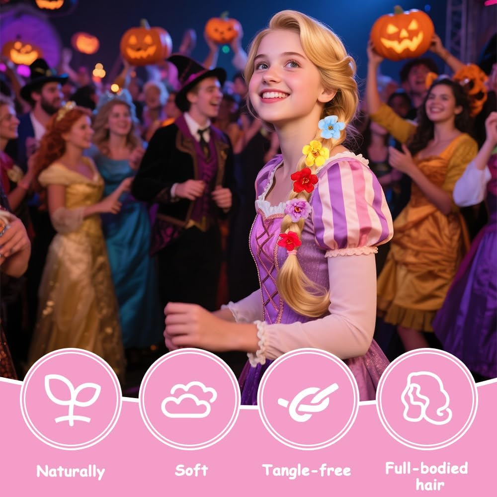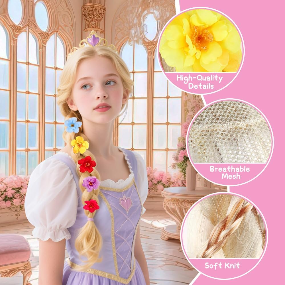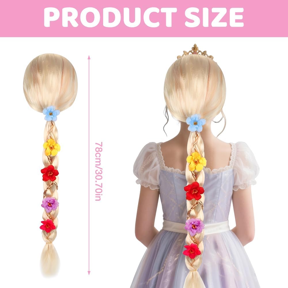 BELLISSIMA PARRUCCA DA PRINCIPESSA: Questa parrucca rapunzel è realizzata a mano e intrecciata con cura. La frusta è decorata con cinque fiori di diversi colori, che la rendono molto carina e graziosa. I colori sono vivaci, realistici e molto brillanti. Il design classico permette alle bambine di indossarla come una principessa. Tutte le bambine adoreranno questa parrucca MATERIALE DI ALTA QUALITÀ: Questa parrucca rapunzel è realizzata in fibra sintetica PET, resistente al calore, realistica, morbida e non facilmente deformabile, perfetta per il cosplay TAGLIA UNICA: Questa parrucca rapunzel è lunga 90 cm, adatta alla maggior parte dei bambini. Il design autoadesivo garantisce una vestibilità perfetta per il bambino, poiché è regolabile per garantire il massimo comfort AMPIE APPLICAZIONI: Questa parrucca rapunzel è perfetta per chiunque voglia trasformarsi in una principessa delle fiabe. Design alla moda e aspetto bellissimo, adatto per l'uso quotidiano, feste, Halloween, balli in maschera, matrimoni, appuntamenti, feste di moda, attività a tema, ecc ISTRUZIONI PER LA CURA: Lavare con acqua fredda e uno shampoo delicato, non usare candeggina, quindi asciugare all'aria in un luogo ben ventilato