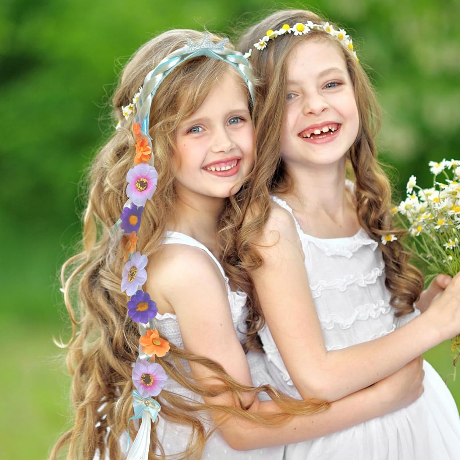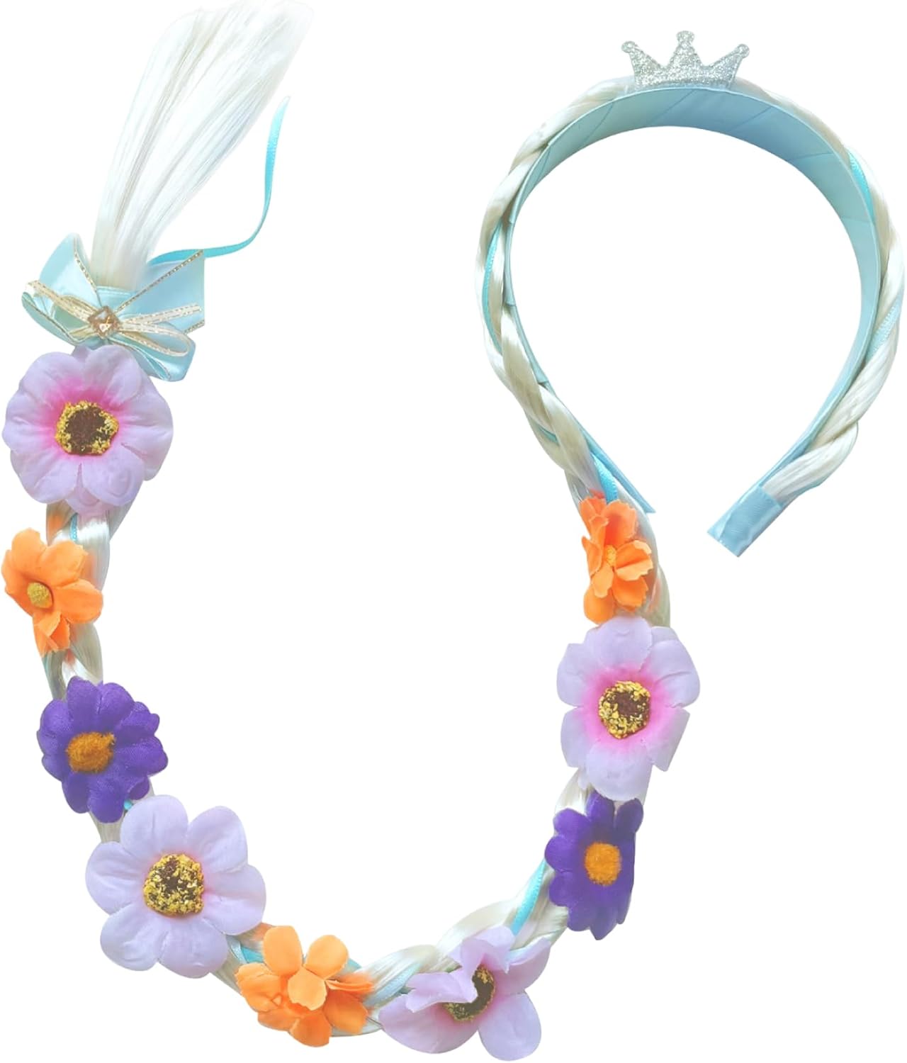 Perfetta per travestimenti e feste: ideale per feste in costume, appuntamenti di gioco, compleanni e Halloween, questa parrucca di Rapunzel è un'aggiunta fantastica al guardaroba da principessa di ogni bambina. Facile da indossare: dotata di una fascia comoda ed elastica, questa parrucca è facile da indossare e da togliere, garantendo una vestibilità sicura per divertirsi tutto il giorno senza disagio. Materiale leggero: realizzata con fibre sintetiche morbide e di qualità, la parrucca è leggera e resistente all'usura, garantendo che mantenga la sua forma e bellezza durante innumerevoli avventure di gioco. Design lungo a 27 trecce: questa parrucca di Rapunzel vanta una treccia lunga 27 pollici, che dona a tua figlia il perfetto look da principessa ispirato alla sua fiaba preferita. Decorata con tiara e fiori: la parrucca è decorata con una tiara scintillante e fiori affascinanti, che la rendono un bellissimo accessorio che aggiunge un tocco di regalità ed eleganza a qualsiasi costume da principessa.
