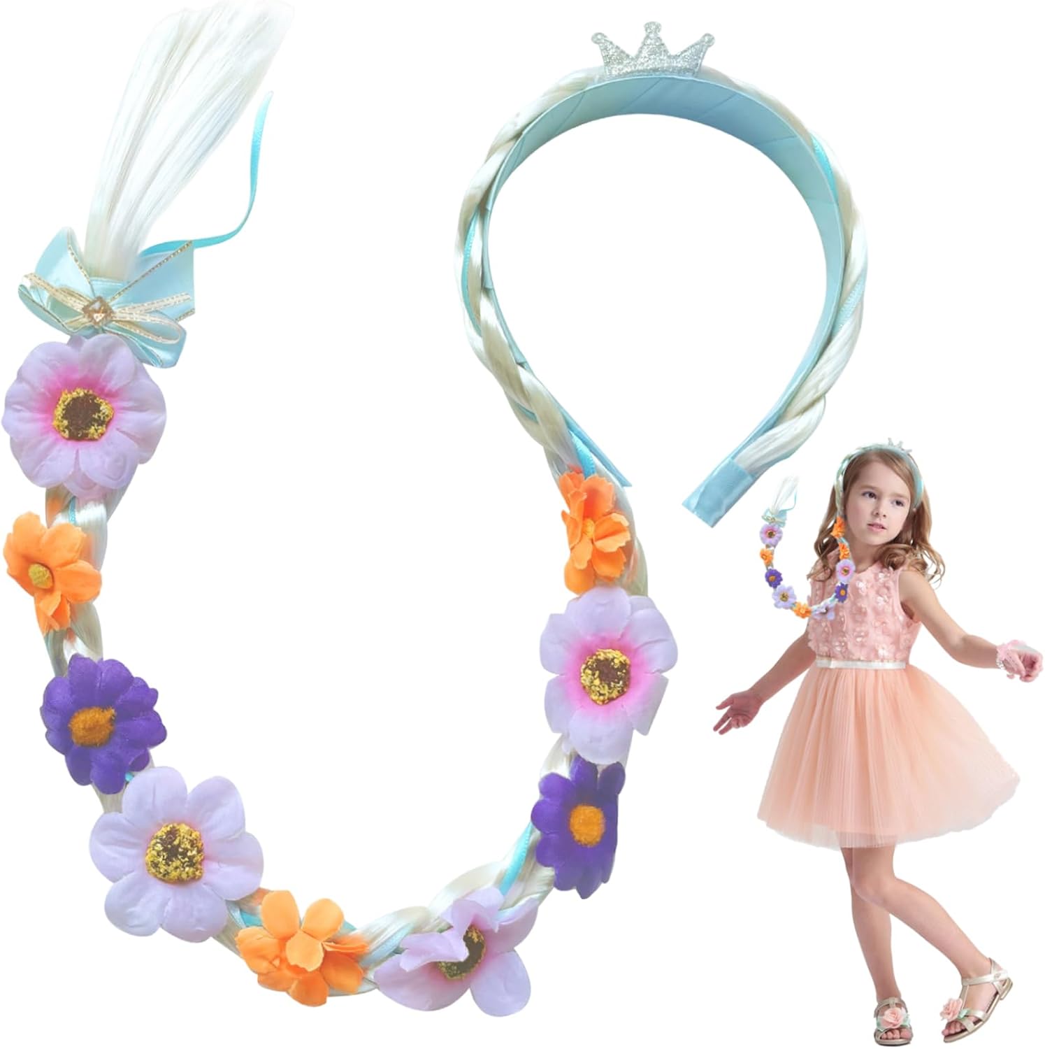 Adornato con tiara e fiori: la parrucca è decorata con una tiara scintillante e fiori affascinanti, rendendolo un bellissimo accessorio che aggiunge un tocco di regalità ed eleganza a qualsiasi costume da principessa. Facile da indossare: con una fascia comoda ed elastica, questa parrucca è facile da indossare e decollare, garantendo una vestibilità sicura per il divertimento di tutti i giorni senza disagio. Materiale leggero: realizzato con fibre sintetiche morbide e morbide, la parrucca è leggera e resistente all'usura, garantendo che mantenga la sua forma e bellezza attraverso innumerevoli avventure di gioco. Perfetto per il travestimento e le feste: ideale per feste in costume, date da gioco, compleanni e Halloween, questa parrucca Rapunzel è un'aggiunta fantastica al guardaroba principessa di ogni bambina. Long 27 Design intrecciato: questa parrucca Rapunzel vanta una treccia lunga da 27 pollici, dando a tuo figlio il perfetto aspetto da principessa ispirato alla loro fiaba preferita.