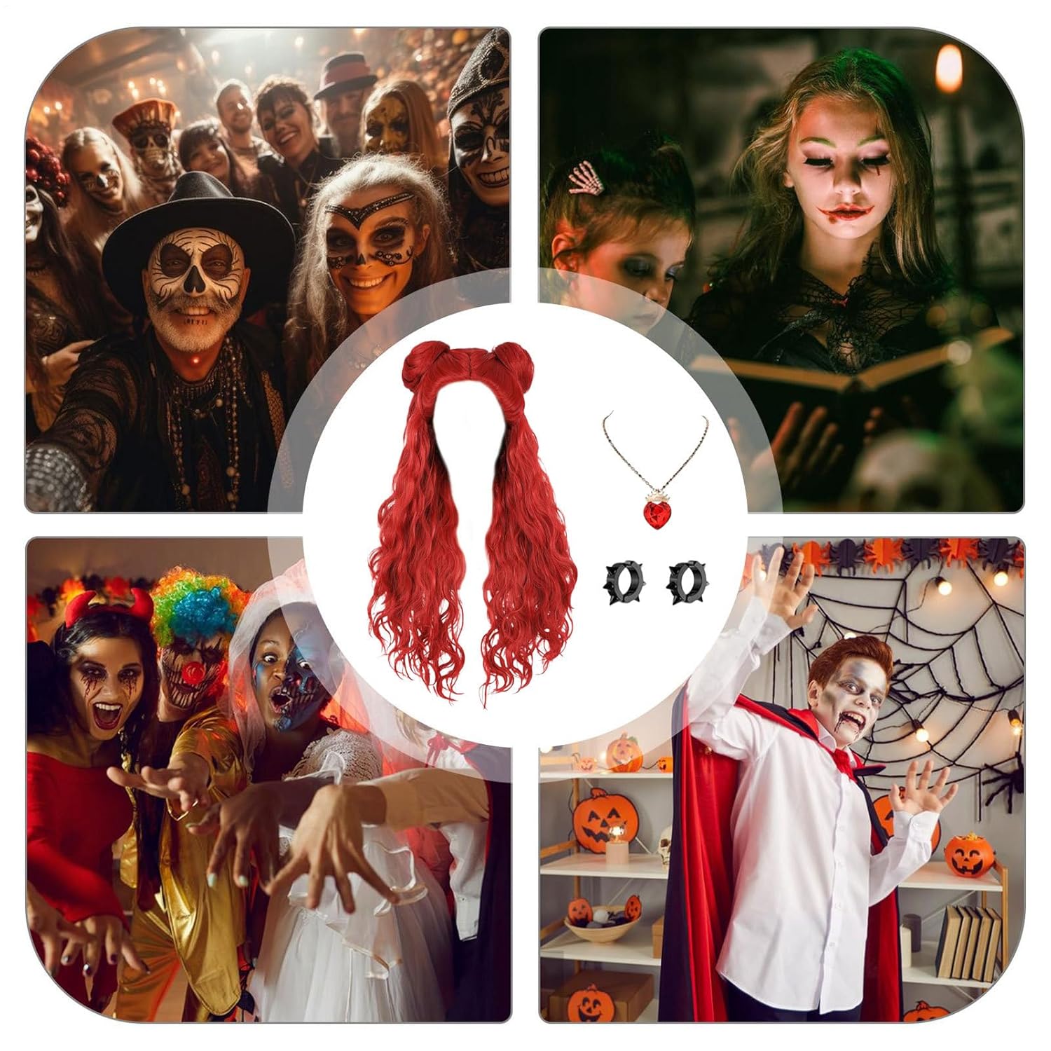 Comfort a lungo termine: lo speciale design del materiale in fibre sintetiche delicate sulla pelle con elastico regolabile previene i punti di pressione e consente un comfort sicuro per tutto il giorno. Costume completo: include parrucca rossa con capelli lunghi con abito classico, arricchita con orecchini punk e ciondolo a cuore per un'autentica esperienza di Halloween. Idoneità all'evento: la struttura degli strati fedele al personaggio e la lavorazione di precisione confermano l'aspetto tematico di Halloween con valore di riconoscimento, adattato in modo ottimale per stile e autenticità. Gestione senza sforzo: gli scomparti organizer integrati consentono una facile conservazione senza cura dello styling, lavabile in lavatrice realizzato in materiale ad asciugatura rapida per una disponibilità immediata e rapida della parrucca di Halloween per bambini. Soluzione adatta ai viaggi: progettata per festival cosplay e feste a tema. Grazie alla sua forma pieghevole e al materiale leggero, la parrucca per bambini è ideale sia per i viaggi che per l'uso sul palco e negli eventi