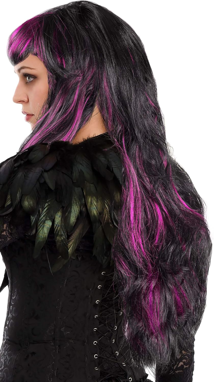 Parrucche Bob e Longhair con ciocche colorate a prezzi vantaggiosi (nero-rosso, nero-blu, nero-rosa e nero-viola, oltre ai colori dell'arcobaleno) Bellissime parrucche a caschetto e a capelli lunghi per carnevale / in maschera o per una festa a tema (perfette per un travestimento da strega) Tagliare e acconciare la parrucca secondo i propri desideri Taglia unica - per signore e "signori" ;-) Materiale: 100% poliestere + retina per capelli