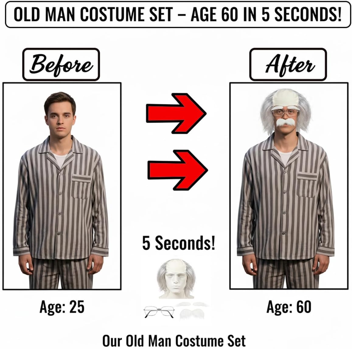 COSTUME OPA: questo divertente costume da nonno include una parrucca bianca irsuta, una barba voluminosa, sopracciglia folte e un classico paio di occhiali rotondi, tutti perfettamente abbinati per entrare immediatamente nel ruolo di un vecchio caratteristico. Ideale per chi vuole trasformarsi in un affascinante pensionato o un nonno eccentrico ACCESSORI REALISTICI PER L'ANNO: la parrucca sintetica di alta qualità con capelli bianchi realistici si completa con la barba e le sopracciglia fitte per un look convincente da pensionato. Gli occhiali in stile retrò completano il costume da uomo di età e ti danno l'aspetto tipico di un vecchio nonno saggio ABBIGLIAMENTO VERSATILE: che si tratti della prossima festa di Halloween, del trasloco colorato di carnevale o di una festa a tema, questo set di travestimenti porterà risate e attenzione. Perfettamente adatto per gli adulti che si divertono a trasformazioni originali e nostalgiche Facile da usare: il set di accessori per il nonno è facile da indossare, comodo da indossare e si adatta a diverse dimensioni della testa. Ideale per travestimenti spontanei, spettacoli teatrali o spettacoli divertenti come un vecchio uomo divertente Regalo perfetto: regala questo costume da nonno come sorpresa originale ad amici, familiari o colleghi. Particolarmente apprezzato dagli amanti del carnevale, gli appassionati di Halloween e le feste di addio al celibato: un vero e proprio highlight per ogni occasione di travestimento