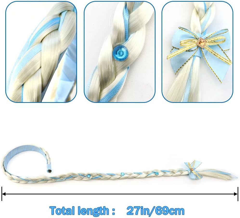 【Fascia per capelli con treccia da principessa】: ogni bambina vuole essere una principessa dai capelli lunghi. Indossando questa fascia per capelli con treccia da principessa, le bambine si sentiranno delle vere principesse. Si divertiranno e si divertiranno giocando ai giochi di travestimento. 【Materiali di alta qualità】: il copricapo con treccia da principessa è realizzato in fibra sintetica ecologica, sicura e inodore, e le trecce sono morbide, lisce e lucide. Taglia unica per la maggior parte delle bambine. 【Facile da indossare】: il nostro copricapo con treccia da principessa è dotato di una fascia elastica, così puoi indossarlo sulla testa in modo rapido e saldo. La fascia è dotata di coperture antiscivolo su entrambi i lati per evitare che la fascia cada. Può essere facilmente indossato e tolto senza danneggiare i capelli. 【Ampia gamma di utilizzi】: la tiara con treccia da principessa è perfetta per feste di compleanno, feste a tema principessa, spettacoli, servizi fotografici, abiti da damigella, travestimenti cosplay, Natale, balli studenteschi, concorsi e altre occasioni speciali. Perfetta per feste di compleanno per ragazze e giochi di travestimento. 【Regalo perfetto】: la tiara da principessa è dotata di scintillanti strass blu e argento e un fiocco di nastro blu all'estremità della treccia, che sembra grazioso e carino, un regalo perfetto per tua figlia, nipote, sorella, nipote o altre bambine.