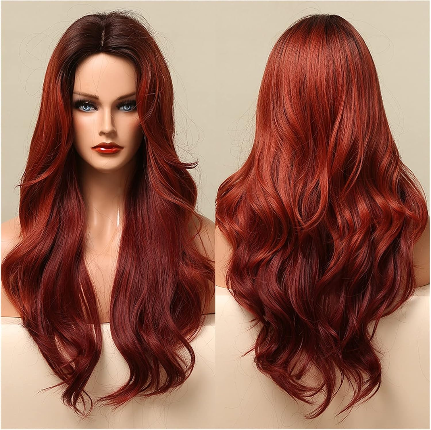 Parrucche Ondulate, ombré, Castano Scuro, Rosso Scuro, Parrucche Sintetiche per Donne, Riga in Mezzo, Cosplay, Feste, Uso Quotidiano, Parrucca in Pizzo