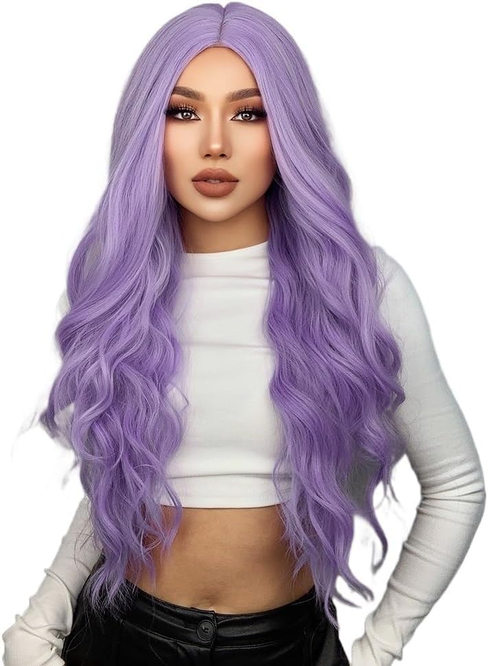 Parrucche per Capelli Naturali Resistenti al Calore, Parrucche da Donna, Parrucche Sintetiche Viola Ondulate per Donne, Lunghe, per Cosplay, Feste, Parrucche Colorate, pa,Tb20051-7