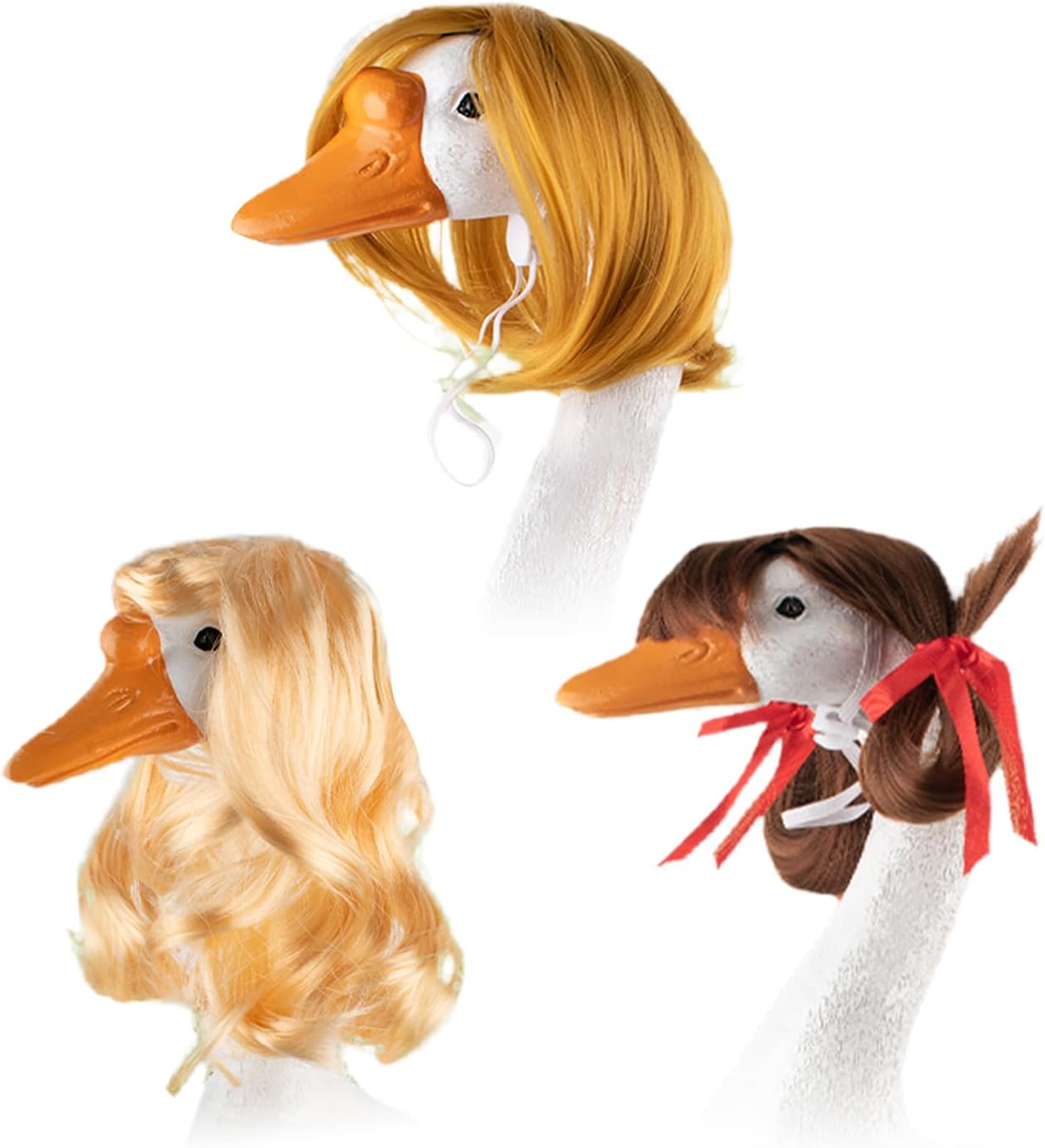Materiale di Qualità: Grazie ai colori indelebili e al materiale UV resistente, questa parrucca impermeabile in fibra sintetica offre una decorazione esterna resiliente adatta a diversi ambienti Accessori Festivi: Parrucche decorazione stagionale stile bob ondulato in set da 3, ideali accessori costumi festività e decorazioni domestiche, facilitano composizioni creative con opzioni styling flessibili Fiocchi incantevoli: Arricchisci il tuo spazio outdoor con decorazioni creative per oche da giardino, complete di deliziosi fiocchi che un effetto unico, ideali per abbellire portici e cortili con stile Occasioni multiple: arricchisci il tuo spazio con stile divertente per esterni e idee per accessori da giardino festivi, perfetti per feste, raduni in piscina e celebrazioni pasquali, regalando fascino a ogni ambiente Accessorio Fissaggio Sicuro: Caratterizzato da design antiscivolo e cinturini regolabili garantisce installazione rapida e stabilità costante per presentazione ottimale delle parrucche per oche