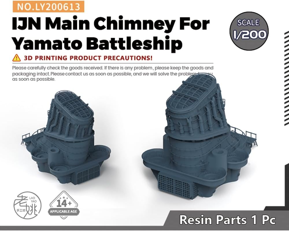 Parti di aggiornamento del modello IJN Nave per la corazzata Yamato Rapporto camino principale: 1/200 Caratteristiche: Non dipinto Tema: Militare Materiale: Resina dipinta 3D