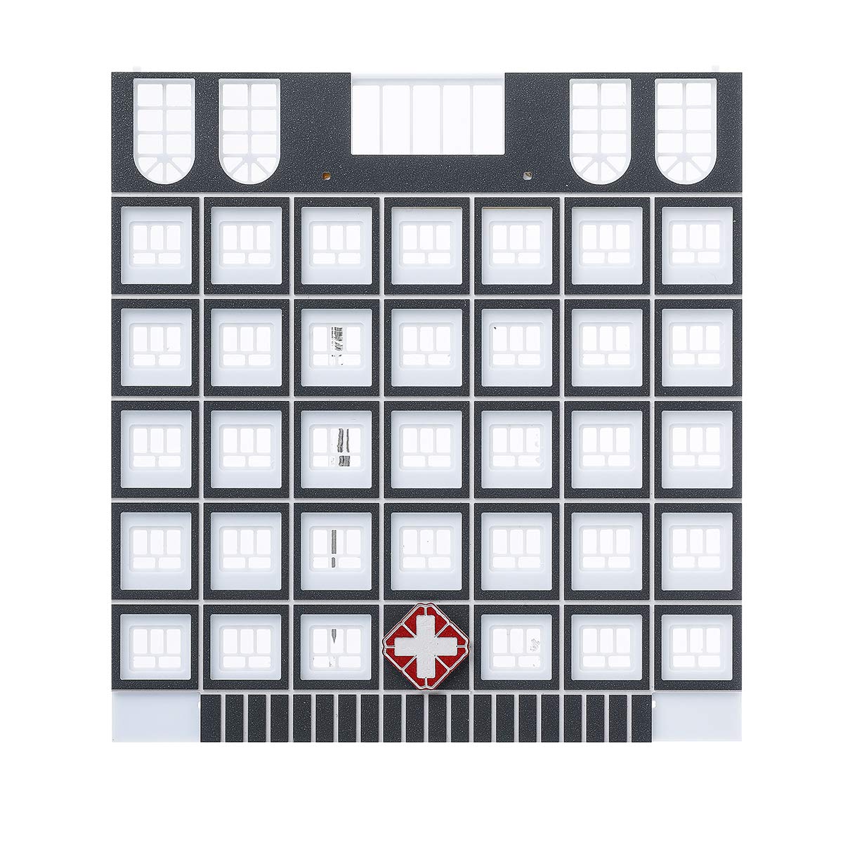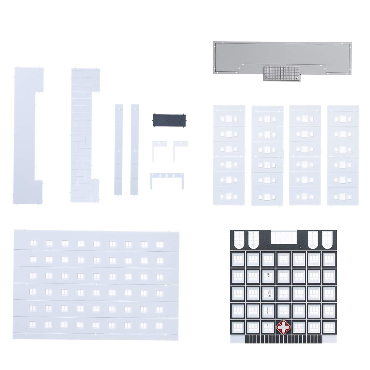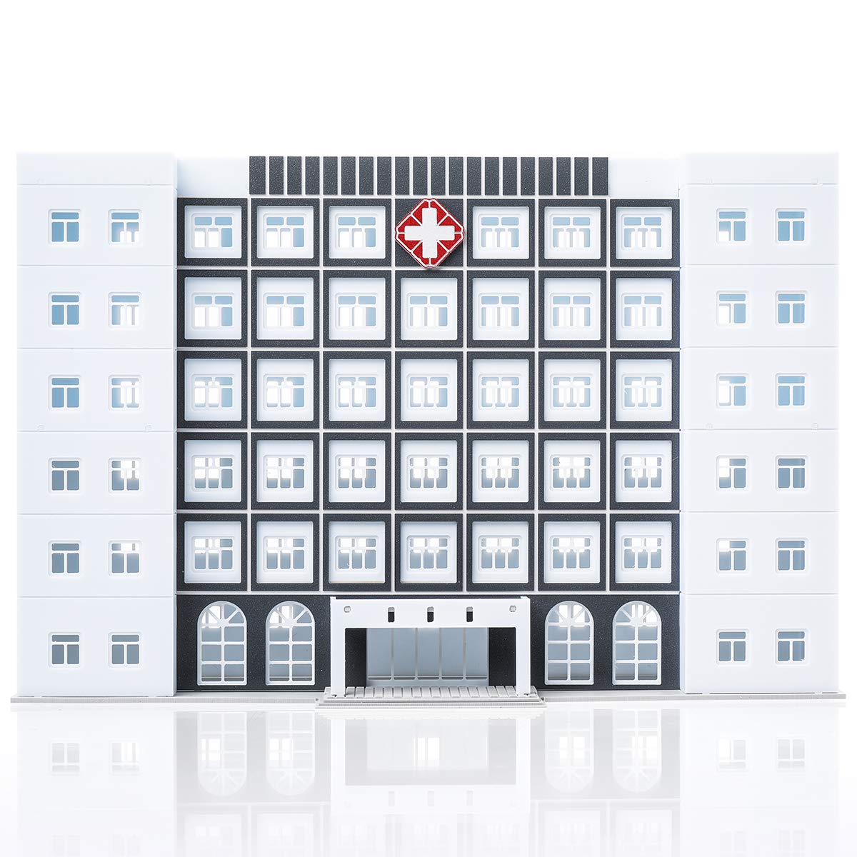 Grattacielo per ufficio modello edificio in scala 1/150 N assemblato Materiale: plastica Scala: 1/150 Colore: bianco con grigio Dimensioni edificio: 21x6x14 cm