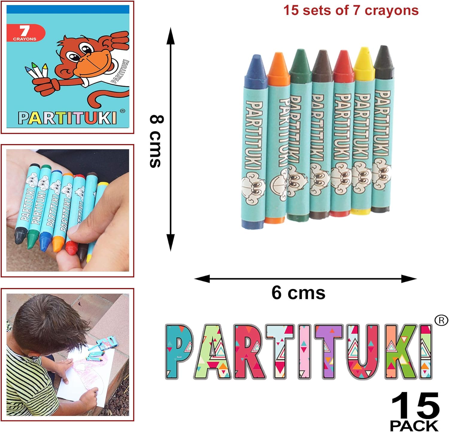 GARANTITO - Questo lotto di 15 set di 7 cere ha una garanzia di rimborso di 60 giorni del 100% del denaro se non soddisfa le tue aspettative. IDEALE PER REGALINI FINI FESTA BAMBINI - Un regalo salutare per feste di compleanno per bambini, giocattoli di compleanno, regali per ragazzi e ragazze, regali per la scuola e la scuola materna, comunioni, Natale. CERTIFICATI - Le cere (tipo crayon) sono certificate secondo gli standard CE di non tossicità (certificazione EN71). COLORI BRILLANTI. Le cere sono appositamente realizzate per dipingere correttamente, ma senza sporcarsi le mani 7 CERE PER ASTUCCIO. Ogni astuccio contiene sette cere colorate. Sono resistenti, facili da affilare e hanno un design ergonomico ideale per i bambini.