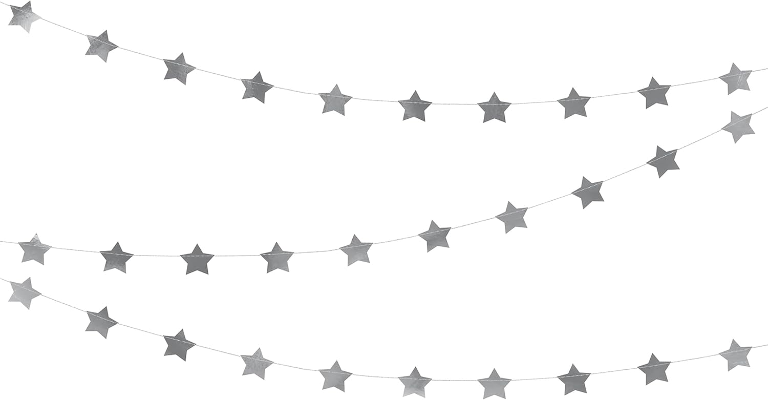 PRODOTTO: Ghirlanda con stelle d'argento / CONTENUTO: 1 ghirlanda di stelle / LUNGHEZZA: ca. 3,6 m / MATERIALE: plastica - pellicola / COLORE: argento DECORAZIONE STELLE: brillante decorazione per feste con stelle, perfetta per una magica atmosfera di festa APPLICAZIONE VERSATILE: sia come decorazione da tavolo, come decorazione per finestre, come decorazione per la parete di fondo, appesa liberamente nella stanza o direttamente sopra la porta d'ingresso SEMPLICE DA INSTALLARE: la ghirlanda decorativa può essere appesa rapidamente e facilmente alla parete, al soffitto, ai mobili o sopra la porta. RIUTILIZZABILE: grazie alla sua riutilizzabilità, è un'opzione sostenibile per le vostre celebrazioni ed eventi