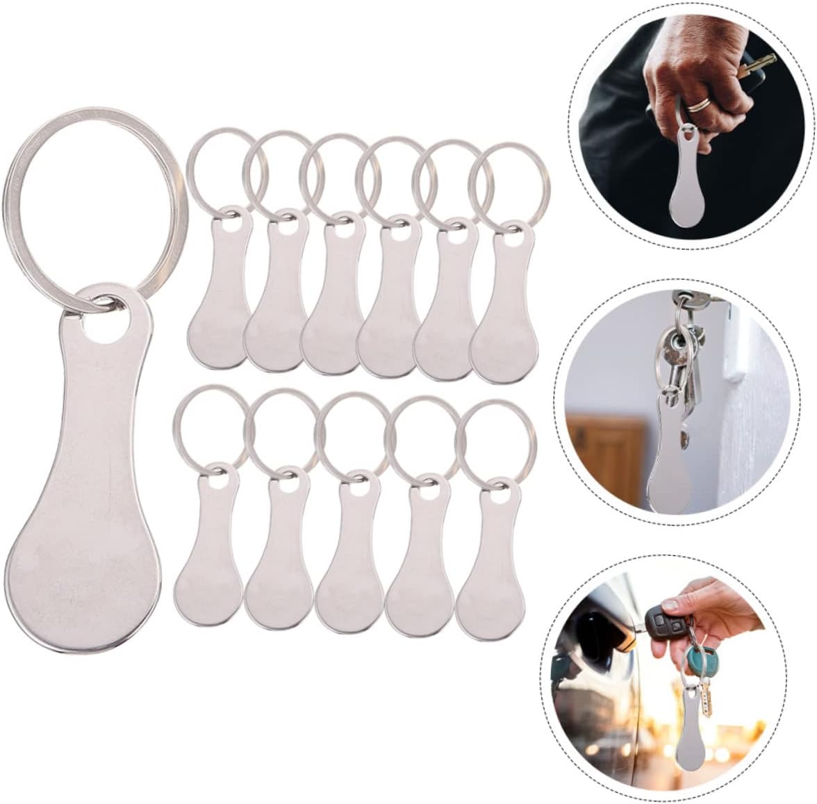 Gettone per carrello della spesa: pratico gettone per il carrello della spesa, può essere utilizzato nel vostro quotidiano, elegante e facile da trasportare, portachiavi con gettone per la spesa Portachiavi in acciaio inox: è un compagno per la vita di tutti i giorni ed è ottimo anche come piccolo gettone per la famiglia o gli amici, chip per il carrello della spesa Chip per carrello della spesa: non è solo un chip per il carrello della spesa, ma anche un fantastico portachiavi per la decorazione delle vostre chiavi, più universale Gettone per il carrello della spesa, portachiavi: non arrugginisce, leggero e portatile, sta comodamente in mano, gettone per il carrello della spesa Carrello della spesa portatile rilascio: la forma insolita rende la chiave più facile da estrarre rispetto alla normale forma rotonda e non è necessario pizzicare la moneta, portachiavi portatile