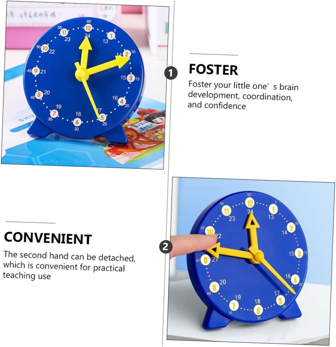 Orologio da tavolo - può sviluppare e allenare lo spazio e l'immaginazione del tuo bambino, in modo che impari l'ora e legga l'ora Per imparare l'ora - anche una buona decorazione da scrivania per casa, camera da letto, soggiorno, ufficio. Strumento per la percezione del tempo Modello di orologio - il modello di orologio ha colori vivaci, può facilmente attirare l'attenzione dei bambini, è interessante e utile, modello di orologio didattico - il modello di insegnamento dell'orologio è interessante e affidabile, può essere rimovibile e simula il funzionamento di un vero orologio, modello didattico di orologio per la scuola Modello di orologio didattico - è un grande giocattolo educativo per gli studenti che non solo possono aiutarli a conoscere, ma anche ad allenare la capacità di coordinazione degli occhi e delle mani. giocattolo modello orologio