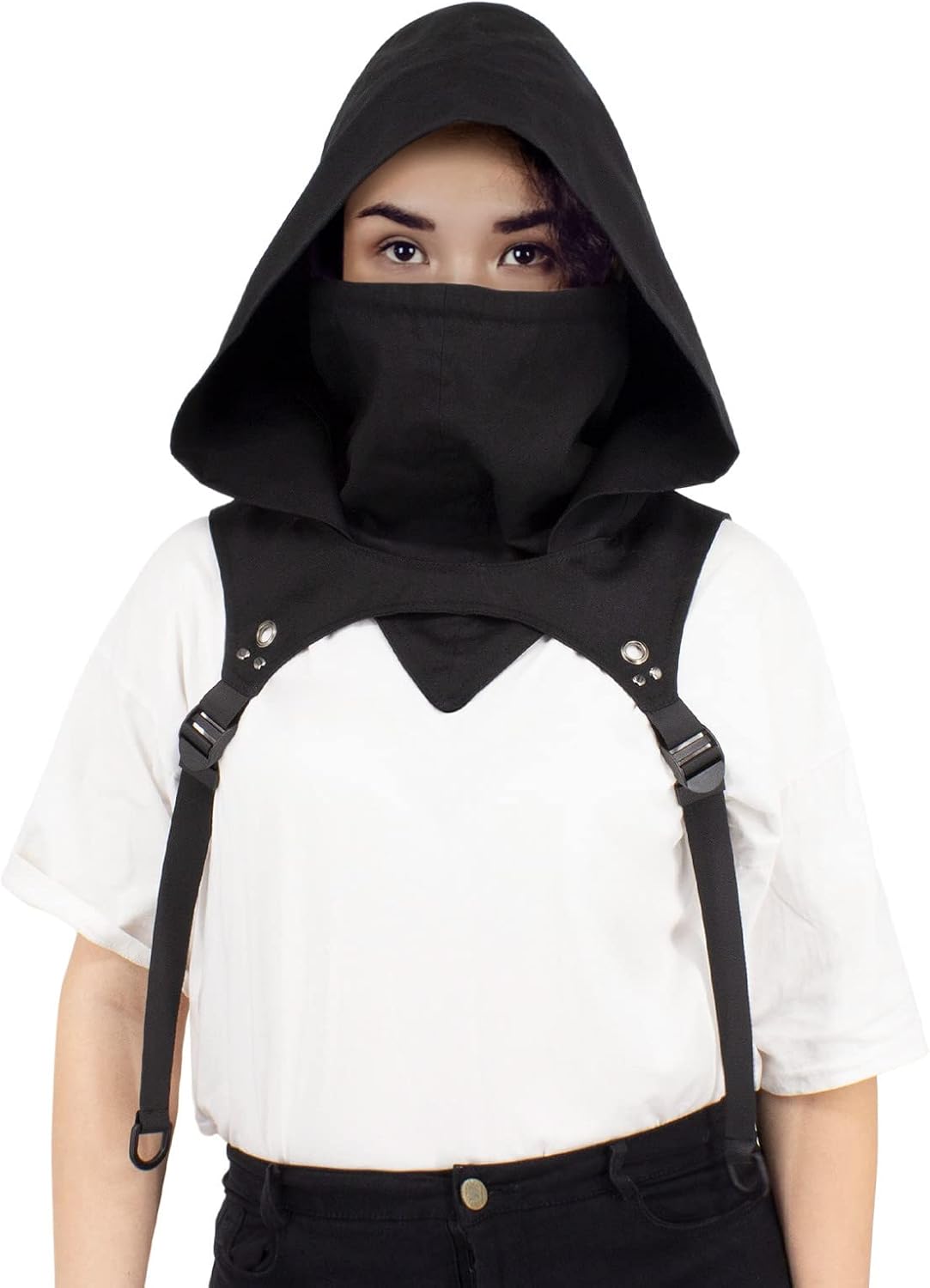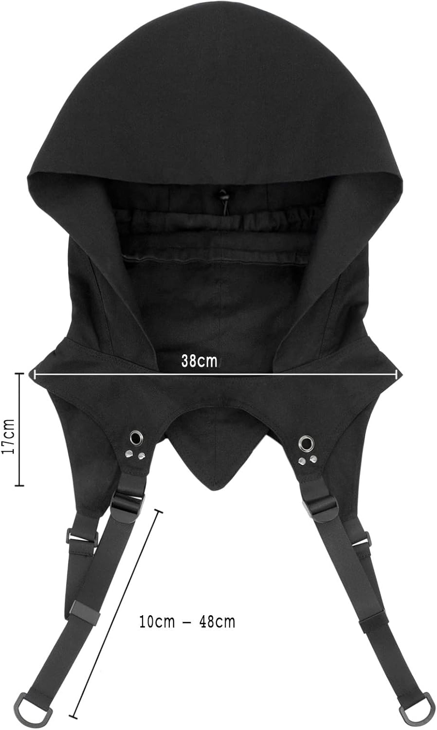 Cappuccio singolo con maschera integrata Ideale per costumi LARP, gotico, medievale e assino Materiale: 100% cotone Maschera per il viso con coulisse Gli spallacci possono essere regolati individualmente in base alle dimensioni