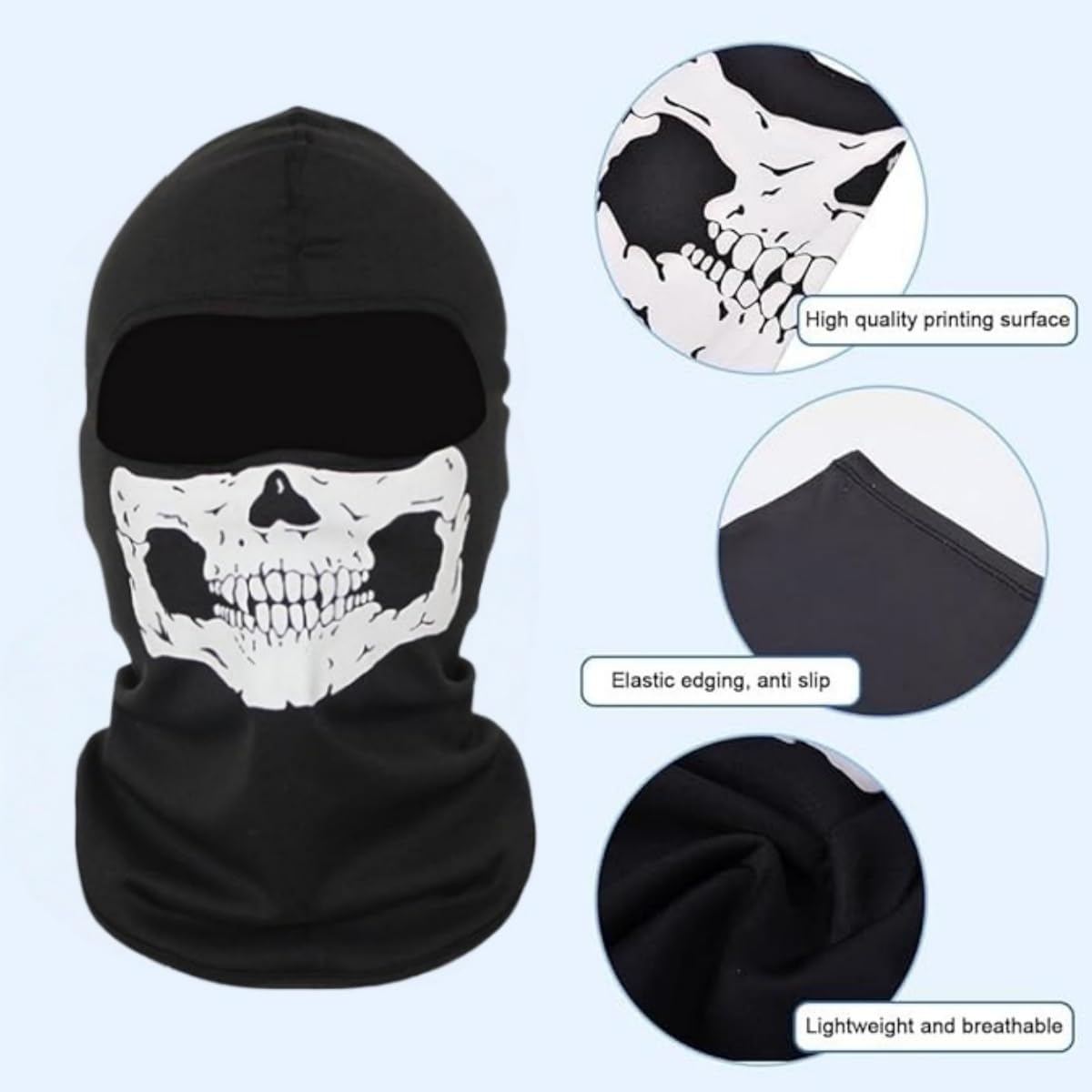 Maschera fantasma, Maschera teschio moto, Passamontagna teschio Ghetta collo Bandane teschio Maschera teschio, Sciarpa Scheletro Halloween Maschera da sci moto Uomo Cappello Uomo Halloween Cosplay (Nero) Specifiche Nome prodotto: Maschera scheletro moto Materiale: Cotone Colore: nero Dimensioni: 14,9 × 6,69 pollici Imballaggio: Borsa OPP Contenuto della confezione 1 x maschera fantasma