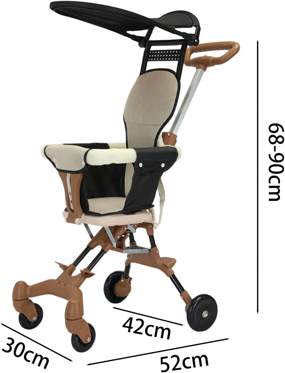 【Doppia direzione】 Passa facilmente dalla modalità avanti a quella indietro, consentendo ai genitori di interagire con loro durante le passeggiate 【Ruote girevoli a 360°】 Le ruote anteriori ruotano dolcemente in tutte le direzioni grazie ai cuscinetti integrati, fornendo un'eccezionale manovrabilità sulla superficie 【Design stabile a quattro ruote】 Presenta una struttura robusta con quattro ruote equidistanti che impediscono il ribaltamento o l'inclinazione, garantendo la massima sicurezza per il tuo bambino 【Comfort regolabile】 L'altezza della maniglia può essere regolata da 68 cm/26,77" a 90 cm/35,43" per un comfort personalizzato, mentre lo spazioso sedile mantiene i tuoi piccoli comodi durante il viaggio