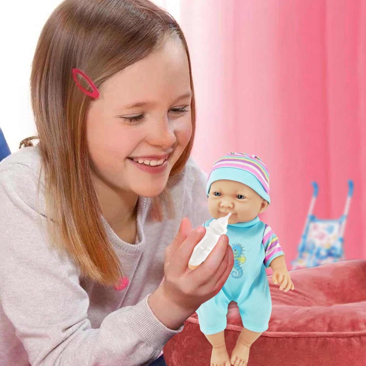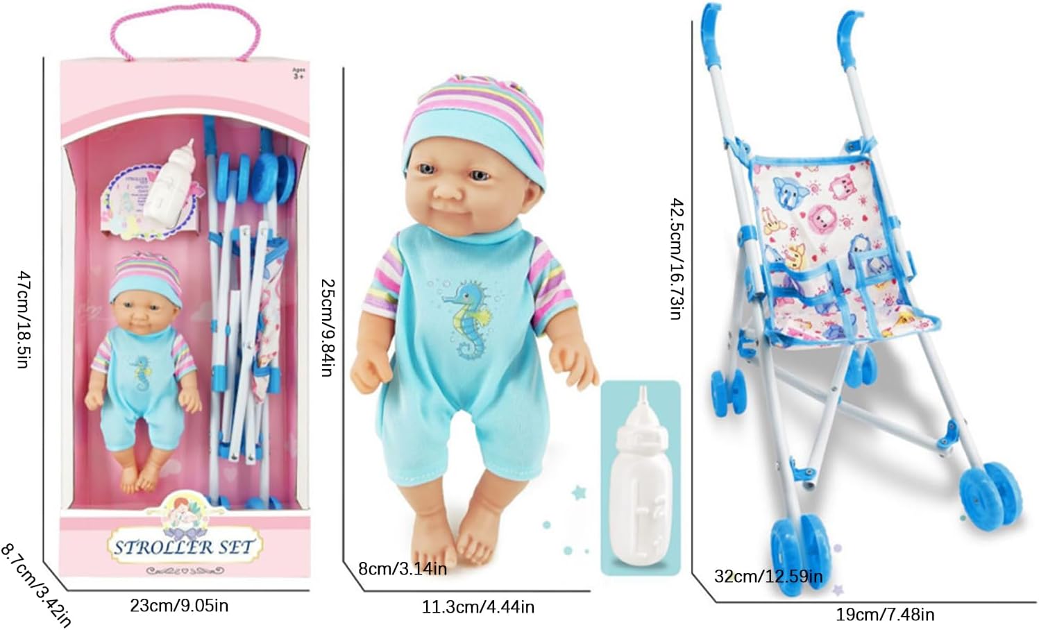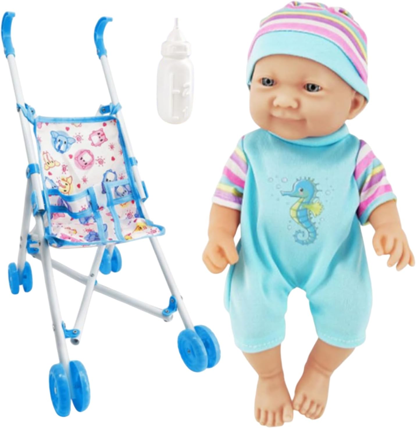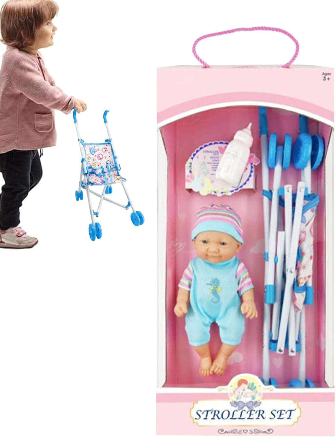 Scelta perfetta in regalo: sorprendi il tuo piccolo con il nostro passeggino per bambole, un'ottima scelta per regali per compleanni, vacanze o celebrazioni. Questo giocattolo affascinante e interattivo è adatto per ragazze e ragazzi dai 3 anni, stimolando la creatività e il divertimento. Portabilità senza sforzo: realizzato per un facile utilizzo e una mobilità, questo passeggino pieghevole è ottimo per esterni e spazi stretti. Si ripiega rapidamente per riporre in modo compatto e risparmiare spazio in casa Sicuro e confortevole: progettato pensando alle tuttofare dei bambini, il passeggino per bambole dispone di una presa comoda realizzata in materiale morbido per una sensazione sicura e piacevole, facilitando una spinta senza sforzo e promuovendo ore di gioco fantasioso ed esplorazione Sviluppa responsabilità: con una bambola dal design realistico e passeggino completo, questo giocattolo stimola l'immaginazione mentre nutre capacità di cura e responsabilità, consentendo ai bambini di esplorare il loro lato materno attraverso un divertimento mirato che sviluppa abilità pratiche Divertimento protetto: Con la sua cintura di sicurezza che rafforza la protezione e il suo design antiscivolo unico, questo passeggino per bambole è ideale per bambini avventurosi che amano giocare in tutta sicurezza