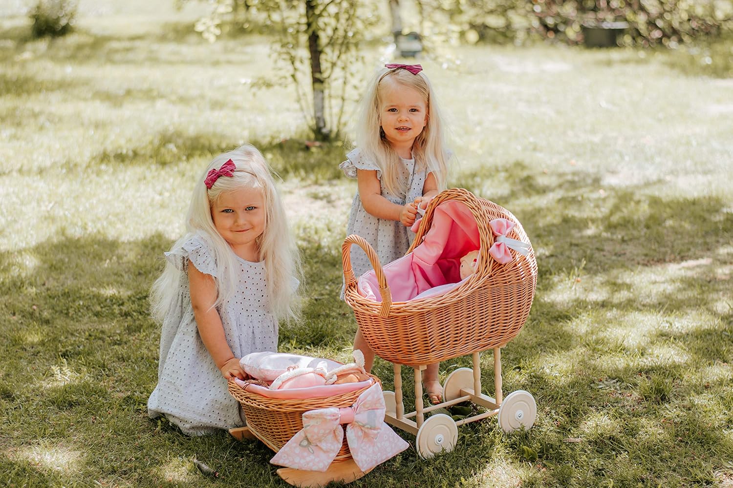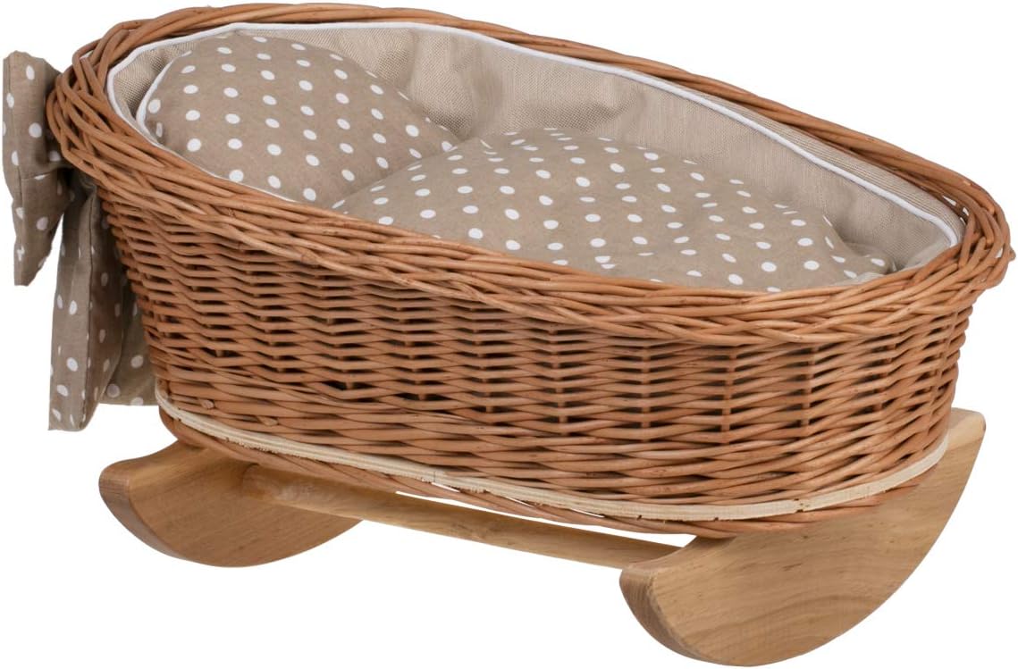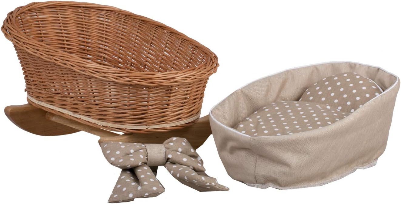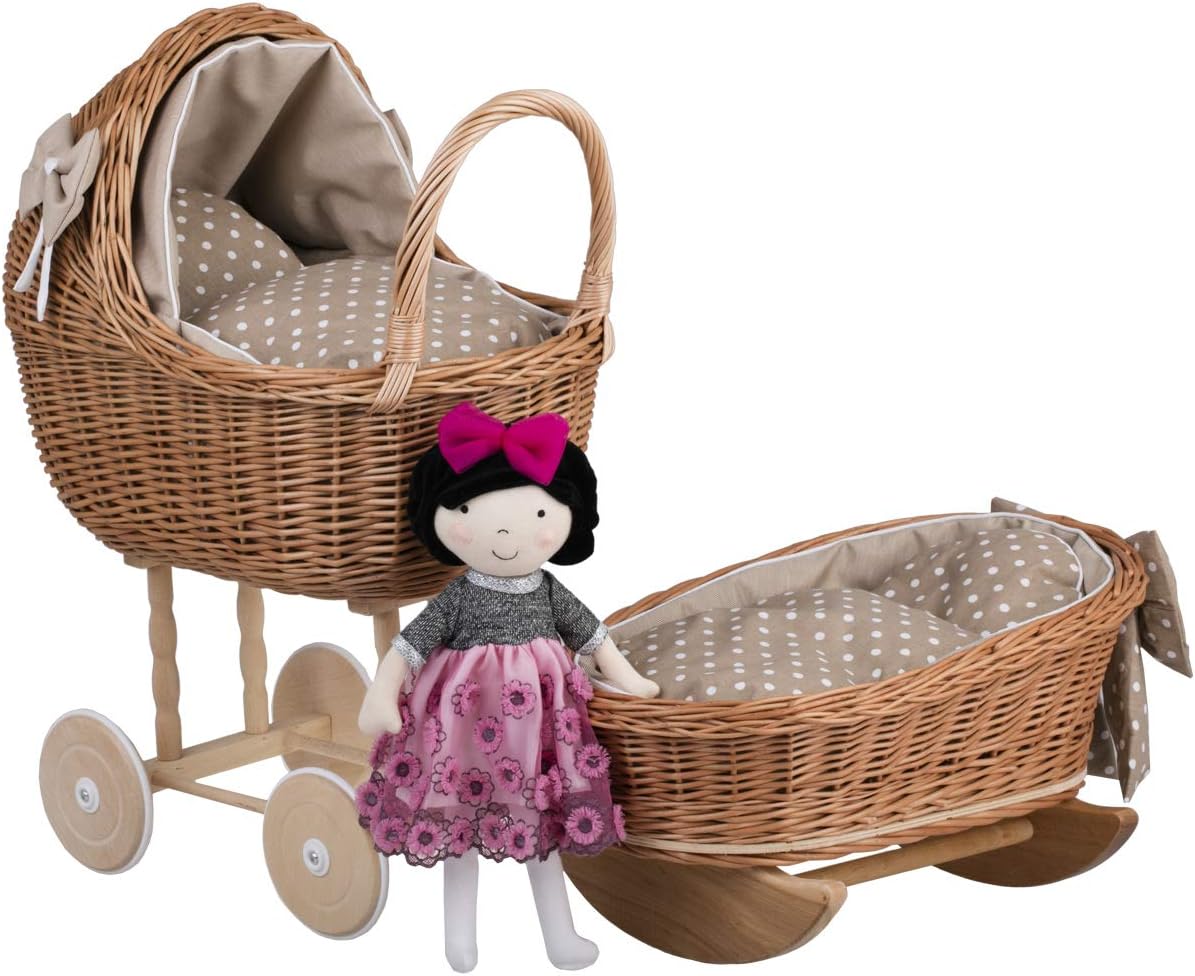 ✔ Passeggino per bambole e culla con biancheria da letto in beige ✔ Robusto e molto stabile, solida struttura in legno, ruote gommate ✔ In vimini (colore naturale) intrecciato a mano in Europa ✔ Un super regalo per la tua figlia o nipote ✔ Passeggino per bambole – 48 x 28 H60 – 46 x 32 H20