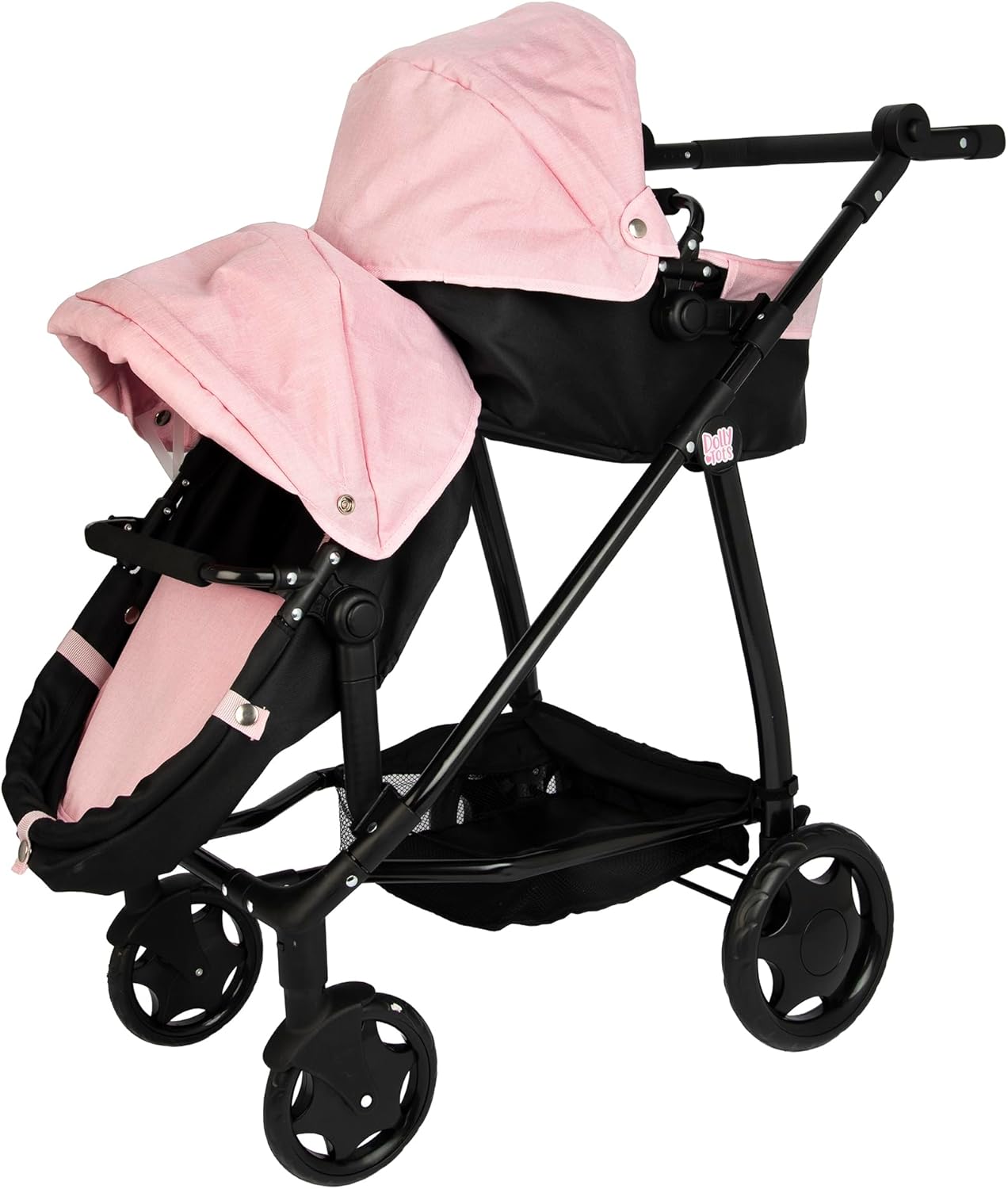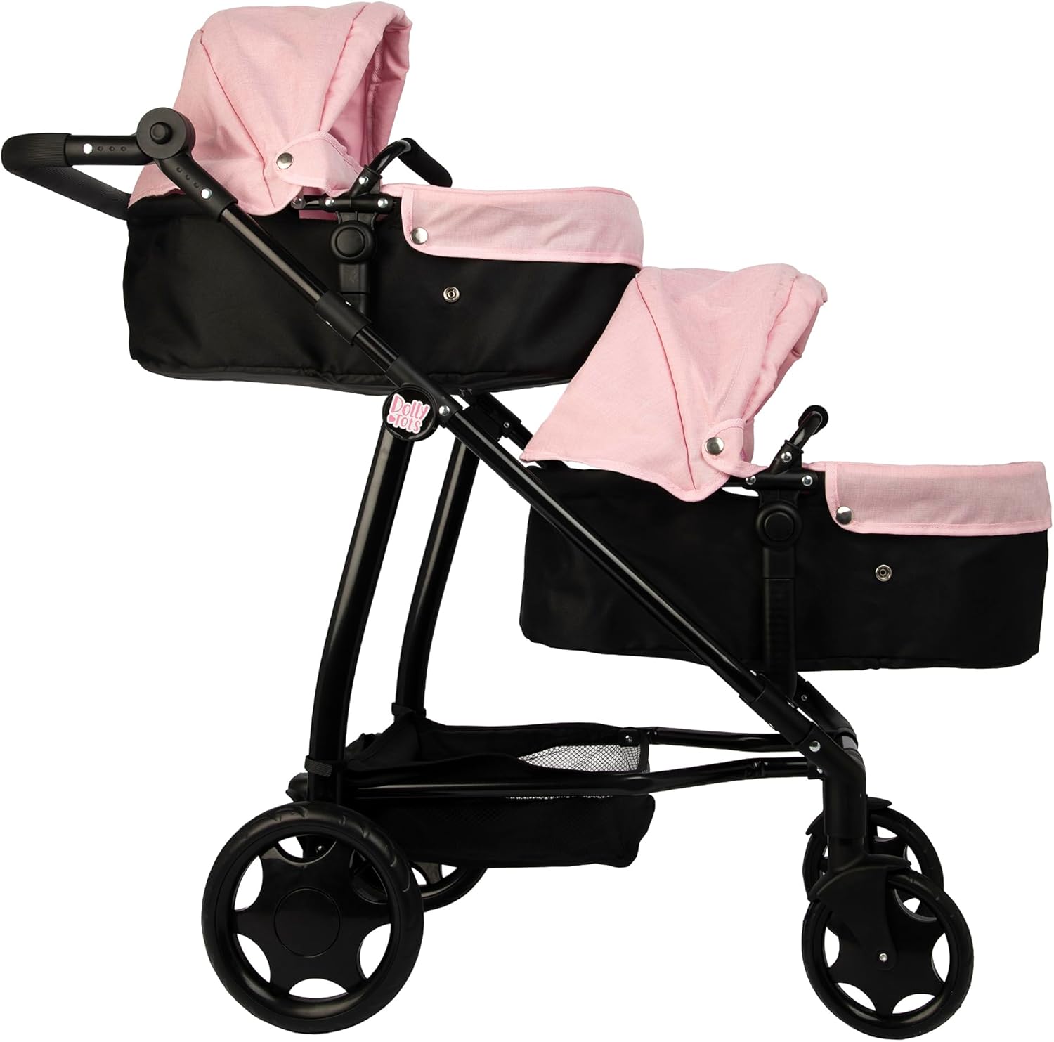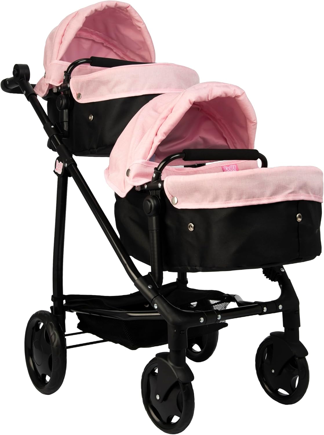 DOLLY TOTS Passeggino gemellare per bambole: il passeggino gemellare Dolly Tots garantisce un doppio divertimento ed è il passeggino gemellare perfetto per le bambole preferite del vostro bambino. Questo grazioso passeggino per bambole presenta una tettuccio completamente regolabile ed è disponibile in una giocosa combinazione di colori rosa-nero. Con diverse modalità di gioco, ragazze e ragazzi possono portare le loro bambole preferite in ogni viaggio. Il modello Evalite è dotato di ruote anteriori girevoli per una facile sterzata e si ripiega in modo piatto per essere riposta risparmiando spazio, ideale per bambini e bambini che amano giocare a ruolo. Il passeggino per bambole gemelle Dolly Tots è adatto per bambole fino a 45 cm e dispone di una maniglia regolabile in altezza da 73 cm a 81 cm con robuste maniglie in schiuma per una presa confortevole. Grazie alle ruote anteriori girevoli è facile da manovrare ed è quindi ideale per bambini e bambini. Con nove varianti di gioco e diverse opzioni di seduta, tra cui parentale, rivolto in avanti, passeggino e passeggino, offre un divertimento vario. Per mantenere le bambole al sicuro, il carrello è dotato di cinture di sicurezza su entrambi i sedili e offre anche spazio sotto il sedile per tutti gli accessori delle bambole come borse da gioco, vestiti o piccoli acquisti. Il gioco di ruolo è una parte importante dell"apprendimento precoce. Più tuo figlio si impegna a giocare fantasioso, più forte sarà stimolata la creatività e l'immaginazione. I giochi di ruolo non solo consentono ai bambini piccoli di sviluppare i propri interessi, ma anche di saperne di più su se stessi, su simpatie, antipatie e abilità. Inoltre, il gioco di ruolo supporta lo sviluppo emotivo, poiché i bambini possono provare una varietà di sentimenti, che si tratti di prendersi cura di una bambola, pesare una bambola che piange o correre il carro preferito in un'avventura emozionante. Specifiche del prodotto: 1 passeggino per bambole Dolly Tots e 1 cestino portaoggetti sotto il sedile. Maniglione regolabile in altezza: 73-81 cm. Adatto per tutte le bambole fino a 45 cm (si prega di notare: bambola non inclusa). Questa carrozzina per bambole si ripiega e quindi facile da riporre. Dimensioni: 81 x 43,5 x 90 cm (A x L x P). Adatto a bambini dai 3 anni in su. Questo passeggino per bambole leggero e compatto è perfetto per ragazzi e ragazze, rendendolo un regalo ideale per bambini e bambini che amano le bambole e gli accessori per giochi di ruolo. DOLLY TOTS CARRELLO E ACCESSORI Scopri Dolly Tots – la collezione definitiva di carrozzine per bambole per i piccoli genitori delle bambole. Progettato con amore e cura, i passeggini Dolly Tots rendono ogni avventura un'esperienza allegra e confortevole. Accessibilità, alta qualità e attenzione ai dettagli sono al primo posto: i nostri passeggini e passeggini per bambole, passeggini e passeggini sono la scelta perfetta per le bambole preferite dei vostri bambini. Se la tua ragazza o il tuo ragazzo ha bisogno di un passeggino per bambole, passeggino o un bariccio per bambole, abbiamo tutto il necessario per rendere magico il gioco di ruolo. Così si creano ricordi d'infanzia indimenticabili – passeggiata per passeggiata.