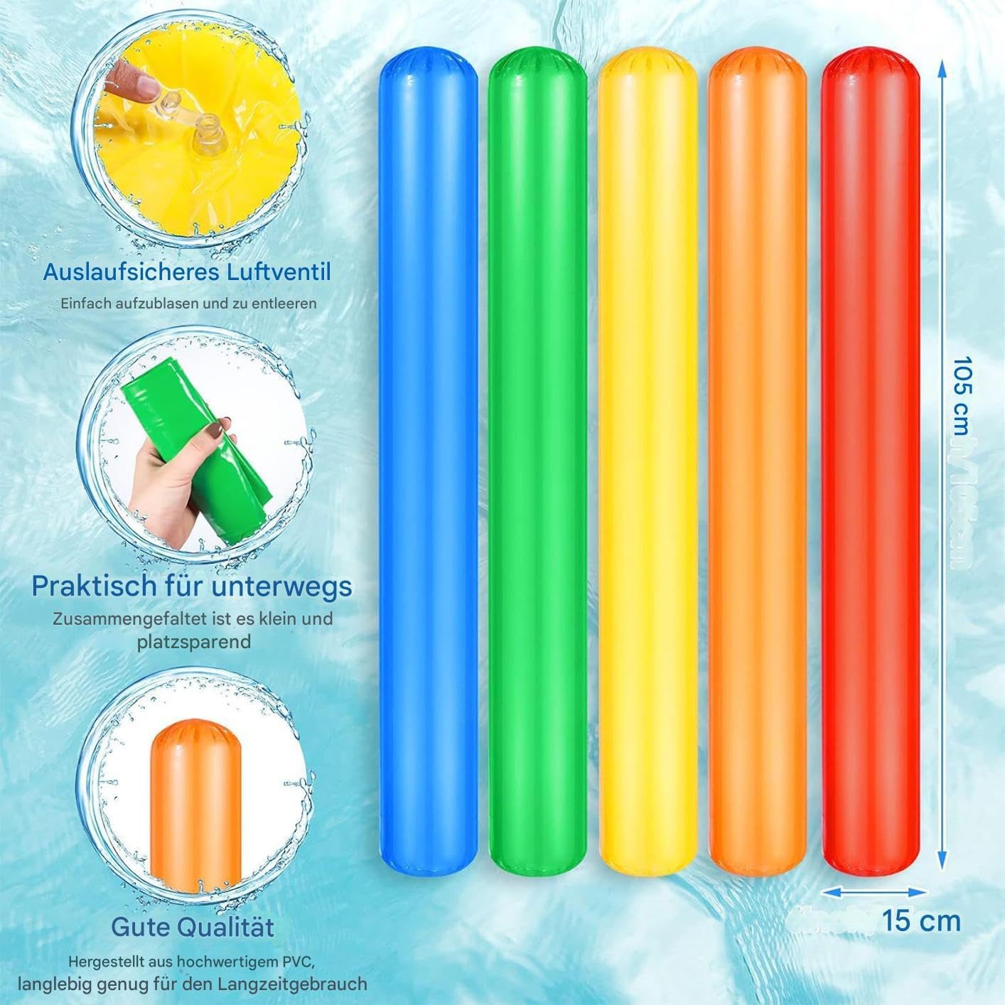 Versatilità di utilizzo: migliora il tempo libero in acqua come versatile spaghetto da piscina – allo stesso tempo aiuto per nuotare e galleggiare, adattabile per numerose attività di gioco e relax Risparmio di spazio: con struttura pieghevole e facile svuotamento, la noodle gonfiabile per piscina offre spazio di archiviazione salvaspazio e portatile, ideale per i viaggi o la casa. Resistenza affidabile: grazie alle proprietà antistrappo e alla base in PVC resistente, consente una riutilizzo coerente con una struttura affidabile per un maggiore divertimento in acqua. Facilità d'uso: garantisce un rapido gonfiaggio grazie alla prevenzione delle perdite e alla chiusura ermetica, che offre un facile montaggio e un utilizzo diretto con attenzione alla facilità di applicazione in qualsiasi ambiente acquatico. Divertimento in acqua in compagnia: crea momenti allegri durante le riunioni attraverso attività congiunte con la noodle gonfiabile della piscina, favorisce l'interazione sociale e garantisce il piacere condiviso in acqua