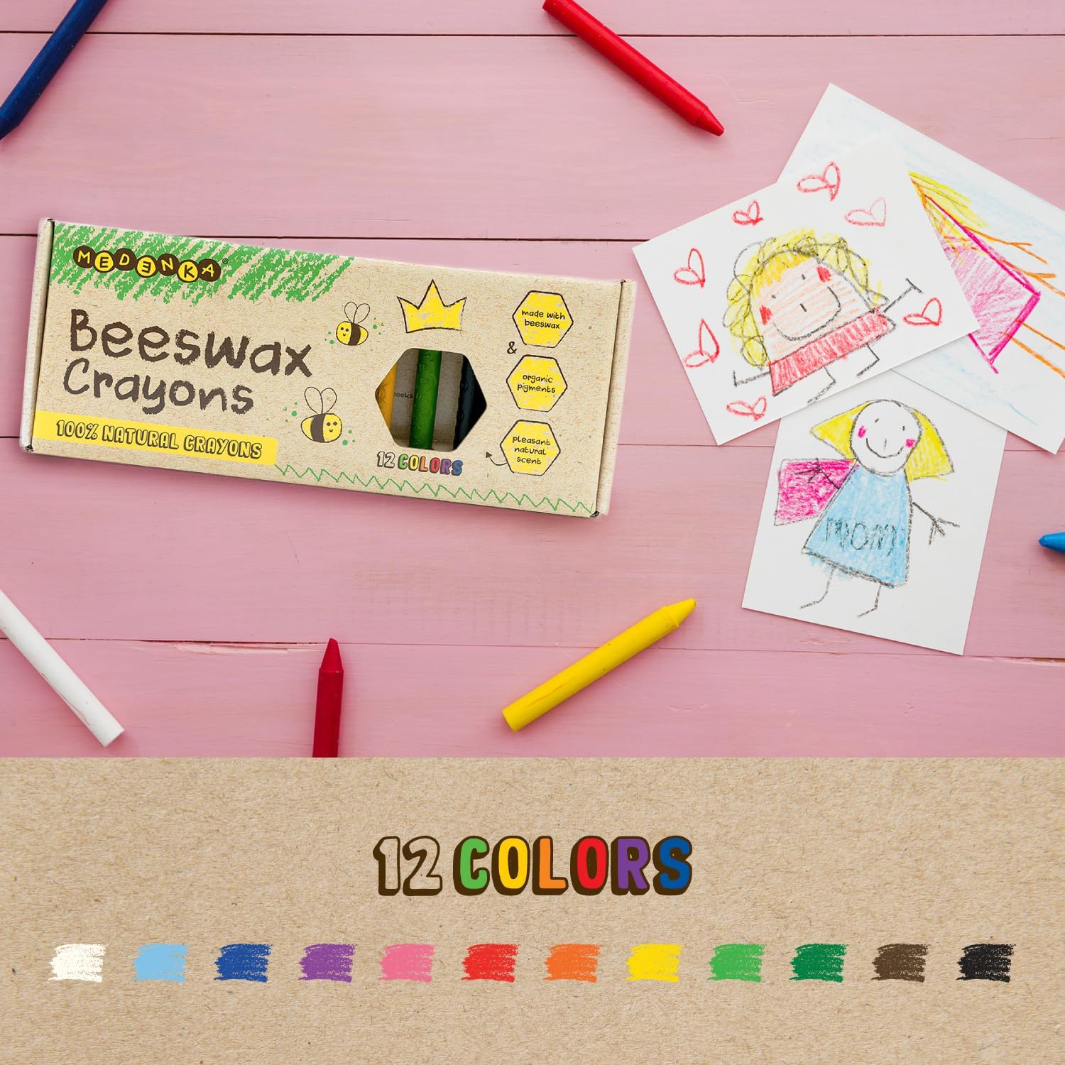 ⭐L'odore è sorprendente e memorabile Prodotto naturale al 100% realizzato in cera d'api europea ⭐12 colori vivaci per esaltare straordinarie prestazioni artistiche espressive ⭐Forma classica (90 mm x 10 mm) con Medenka fuso per certificare la qualità Realizzato per bambini e adulti