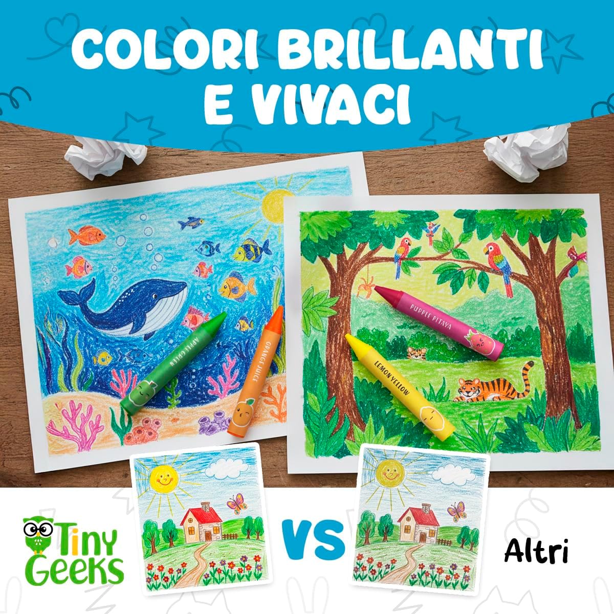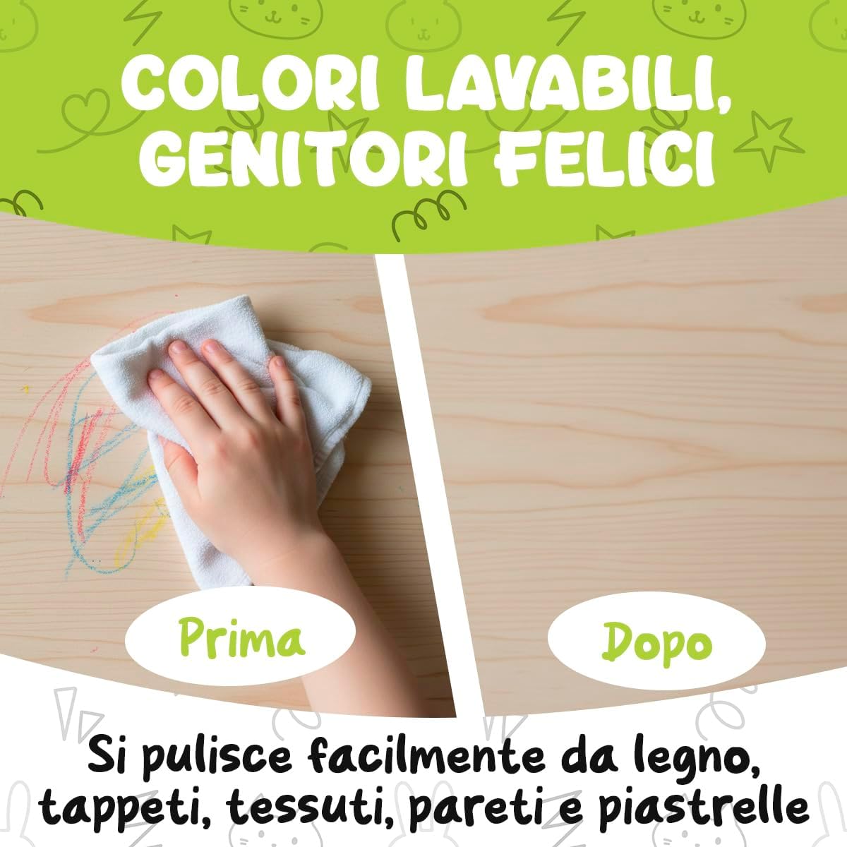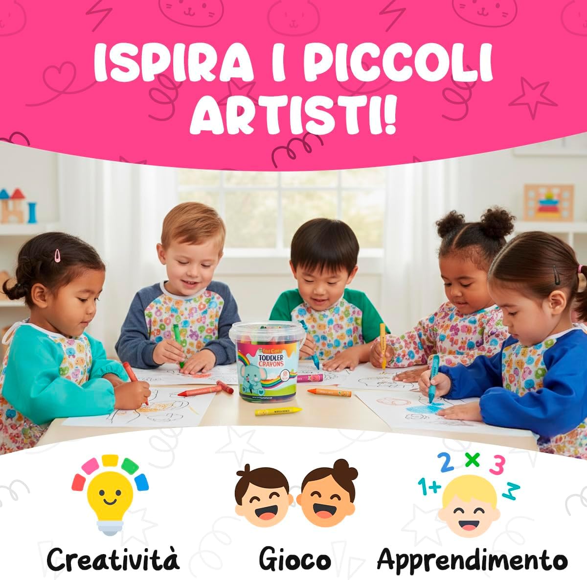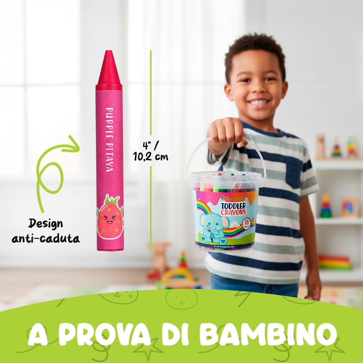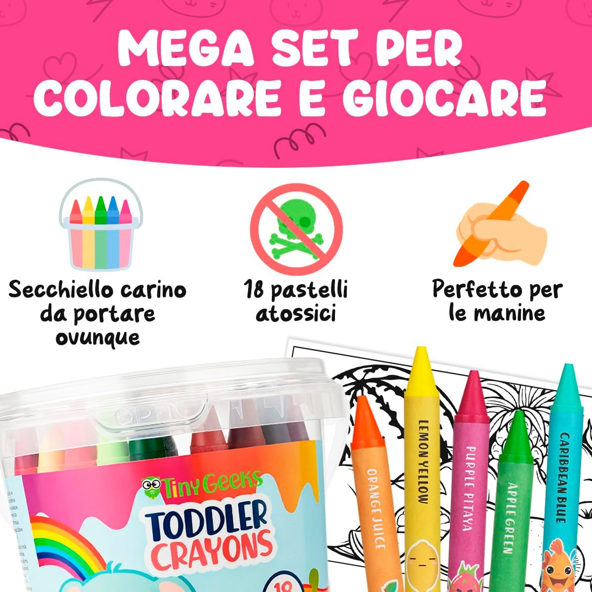 🌈 SCATENA LA CREATIVITÀ: SET REGALO DI CRAYON DIVERTENTI PER BAMBINI! Il nostro set regalo include 18 pastelli a cera jumbo per bambini dai 4 agli 8 anni in colori vivaci e brillanti che scivolano dolcemente sulla carta. Include fogli da colorare stampati e PDF stampabili per un divertimento creativo senza fine! Un'attività senza schermo che stimola l'immaginazione e la concentrazione – il regalo di compleanno e di Natale perfetto per bambini di tutte le età, piccoli artisti e bambini piccoli. 🫳 PASTELLI PER BAMBINI SUPER ROBUSTI, FACILI DA TENERE, INDISTRUTTIBILI. Questi pastelli grandi per bambini dai 3 ai 4 anni sono pastelli indistruttibili, a prova di bambino, progettati per durare! La forma arrotondata del pastello e l'impugnatura ergonomica sono perfette per le manine, migliorando le capacità motorie fini e la coordinazione occhio-mano. Pastelli per bambini non tossici essenziali per un divertimento sano nel colorare! 🍃 COLORI VIBRANTI, NON TOSSICI E SICURI. I nostri pastelli grandi premium colorano facilmente e in modo vibrante. Sono certificati sicuri per i bambini – senza piombo, senza ftalati e soddisfano gli standard di valutazione del rischio tossicologico. I genitori possono rilassarsi sapendo che i bambini sono al sicuro mentre esplorano. 🧽 LAVABILI, FACILI DA PULIRE, DIVERTIMENTO SENZA DISORDINE. Rendi la pulizia un gioco da ragazzi! I nostri pastelli lavabili per bambini dai 4 agli 8 anni sono notevolmente facili da pulire e non macchiano. Questo set completo di pastelli giganti per il rientro a scuola non macchierà la pelle. 🎒 PORTATILE, PERFETTO PER ATTIVITÀ DI VIAGGIO. Questi pastelli spessi sono forniti in un robusto secchiello di plastica sicuro per i bambini per protezione e organizzazione. Ottimi materiali artistici per bambini in viaggio – ideali per intrattenere i bambini ovunque!