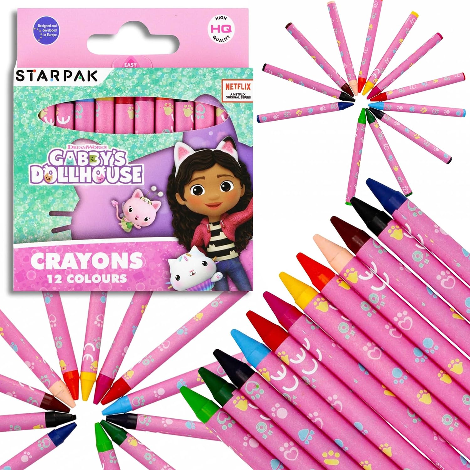 Gabi's Cat House offre un set di pastelli a cera, perfetti per le attività artistiche scolastiche e domestiche. Il set contiene 12 colori vivaci che permettono ai bambini di creare disegni colorati e creativi. I pastelli a cera sono facili da usare e forniscono una copertura liscia e uniforme della carta. Grazie alla loro struttura resistente e sicura, sono adatti alle mani dei più piccoli, rendendoli un'ottima scelta per gli astucci scolastici. Il prodotto è sicuro per i bambini, supportando il loro sviluppo artistico e stimolando la loro immaginazione. I pastelli a cera Cat House Gabi non sono solo uno strumento per disegnare, ma anche un modo per sviluppare la creatività e la manualità dei più piccoli.