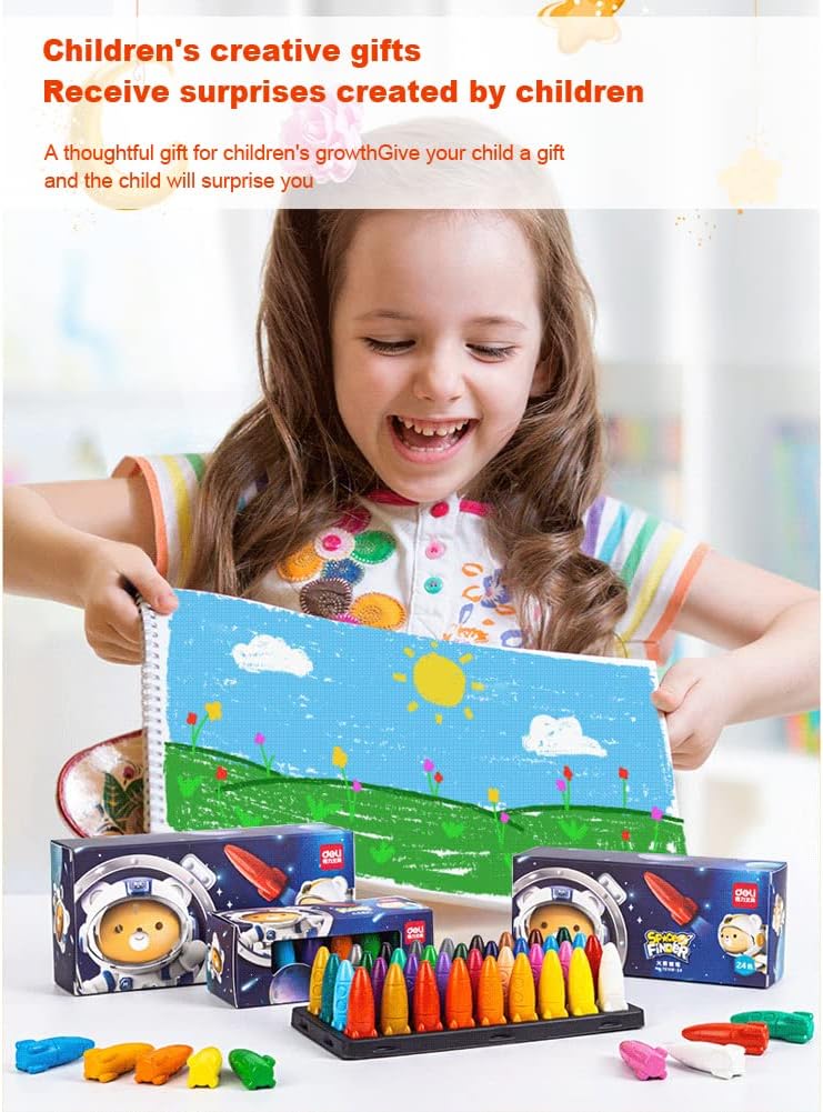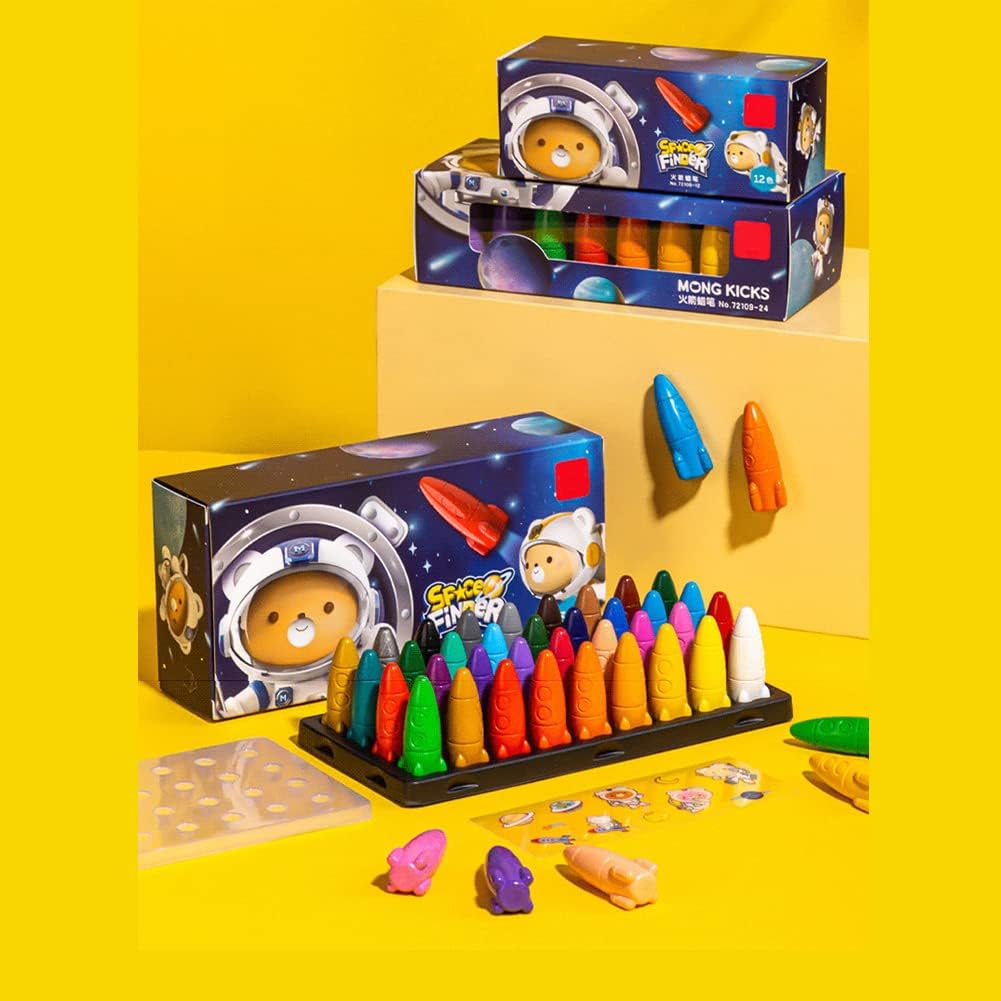 Pastelli a colori per bambini: ogni scatola contiene simpatici pastelli a forma di razzo in 12/24/36 colori di base, una varietà di colori aiuterà a sviluppare le capacità di pensiero esplorazione del colore dei bambini Pastelli non tossici: i nostri pastelli da pittura sono realizzati con materiali di alta qualità sono sicuri per ragazzi, ragazze, bambini e bambini Facile da afferrare: facile da tenere per le mani piccole, i pastelli per bambini sono appositamente progettati per i bambini, le piccole mani dei bambini possono facilmente tenere questi pastelli in modo che possano disegnare senza sforzo Forma a razzo: comoda da tenere, la forma del razzo con comoda impugnatura può essere utilizzata come pennello o come giocattolo. Il tutto è generoso e non facile da rompere Regalo perfetto: con tutto il necessario per iniziare a creare, questo è un ottimo regalo per ragazze e ragazzi. I bambini adoreranno usare questi pastelli dai colori vivaci e resistenti a casa o a scuola