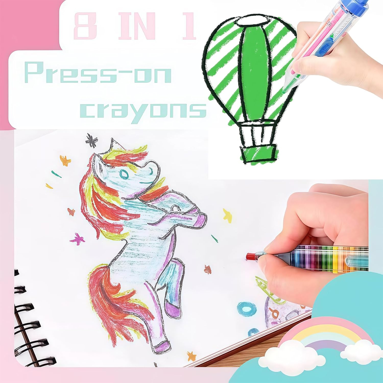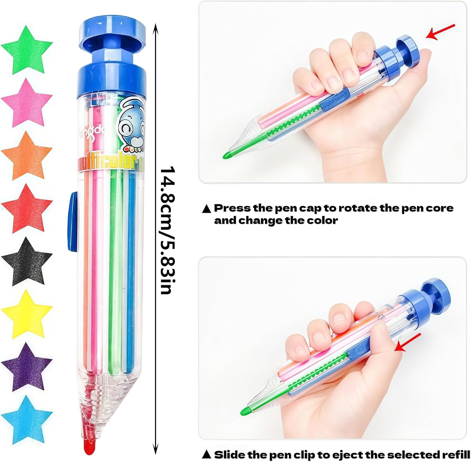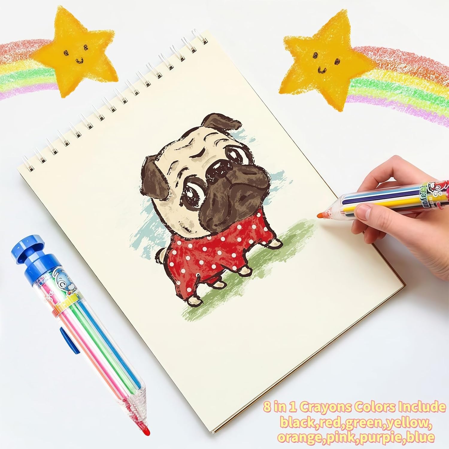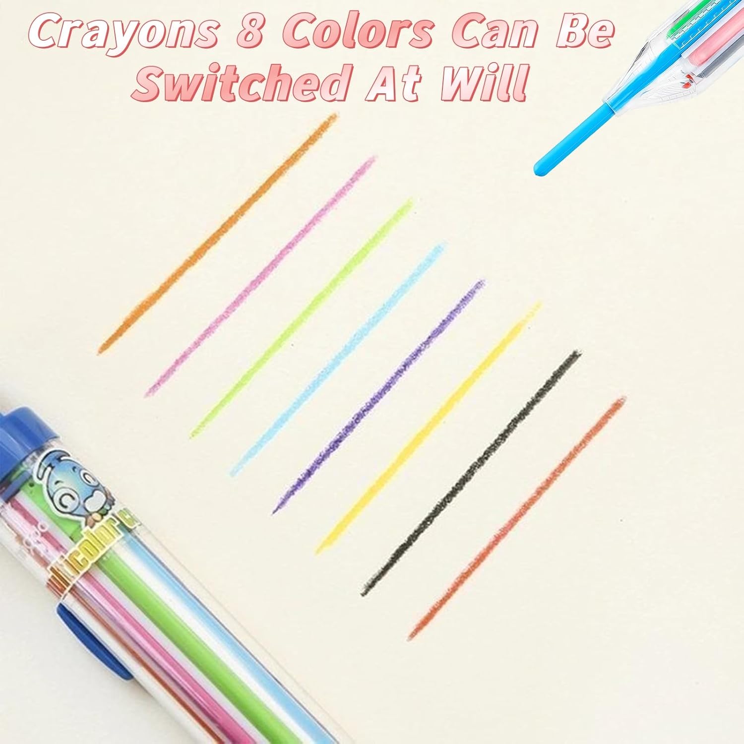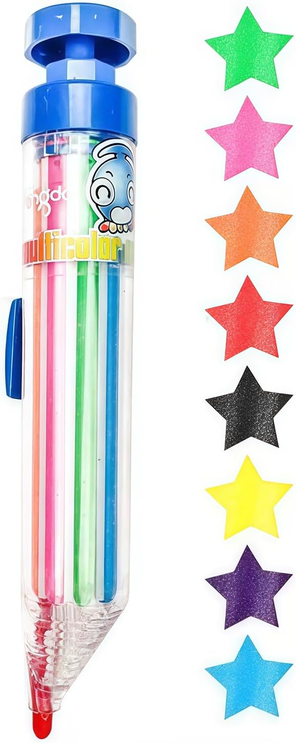 Pastelli multicolori 8 in 1: ogni pastello contiene 8 colori, sono blu, viola, giallo, nero, rosso, arancione, rosa, verde, tutti belli e adatti per l'uso di base, abbastanza scelta di colore per soddisfare le diverse esigenze di creazione di pittura in qualsiasi momento e ovunque. I pastelli colorati soddisferanno le esigenze del processo di disegno e gli inchiostri colorati stimoleranno la tua creatività e immaginazione e aumenteranno il tuo interesse per l'apprendimento Comodo da usare: il design trasparente del barilotto di Crayons for Kids aiuta a identificare i colori a colpo d'occhio, mentre il meccanismo retrattile protegge i colori quando non in uso. Pastelli ecologici, la ricarica può essere sostituita a piacimento, è possibile passare rapidamente da diversi colori con una leggera pressione, divertente e pratico tutto in uno, non facile da sporcare le mani, non tossico, i bambini possono usarlo senza preoccupazioni. Se i pastelli per bambini l'interruttore non è sensibile, potrebbe essere perché il nucleo della penna non è sicuro a causa degli urti durante la consegna. Basta smontarlo e premerlo saldamente Pratici pastelli colorati per scrittura da disegno: dotati di un cappuccio robusto e inchiostro liscio, questi pastelli a matita combinano un aspetto carino con praticità per aiutarti a scrivere o disegnare comodamente con loro. Questo è più leggero e portatile, per studenti e bambini da portare in astucci o zaini, quindi è facile da portare in giro per schizzi all'aperto o scuola. Ogni pastello ha 8 colori intercambiabili, abbastanza scelta di colore per soddisfare le diverse esigenze di creazione di pittura in qualsiasi momento e ovunque Design retrattile a molla per bambini: quale colore usare, basta premere la piccola molla del colore delle ricariche, quindi premere la parte superiore, smettere di usarlo. Ciò passa rapidamente tra 8 colori con il semplice tocco di un pulsante. Dimensioni: 14,8 x 2,5 cm. Design carino, ottimo regalo per i bambini. È possibile registrare e contrassegnare informazioni importanti in diversi colori su carte o libri, questo rende i dischi più chiari e più facili da visualizzare, il che rende l'apprendimento e il lavoro più efficienti. Colori pastello a olio scorrevoli ideali per progetti artistici, graffiti, disegno e attività di colorazione Regalo perfetto: questo è un simpatico regalo per feste per bambini nella festa di compleanno a tema, e apprezzeranno questi pastelli grossi per bomboniere per bambini. I pastelli retrattili 8 in 1 sono simpatici bomboniere per bambini alle feste di compleanno a tema, adoreranno questi pastelli come bomboniere per bambini Il semplice meccanismo a pulsante consente rapidi cambi di colore senza il disordine di maneggiare più pastelli