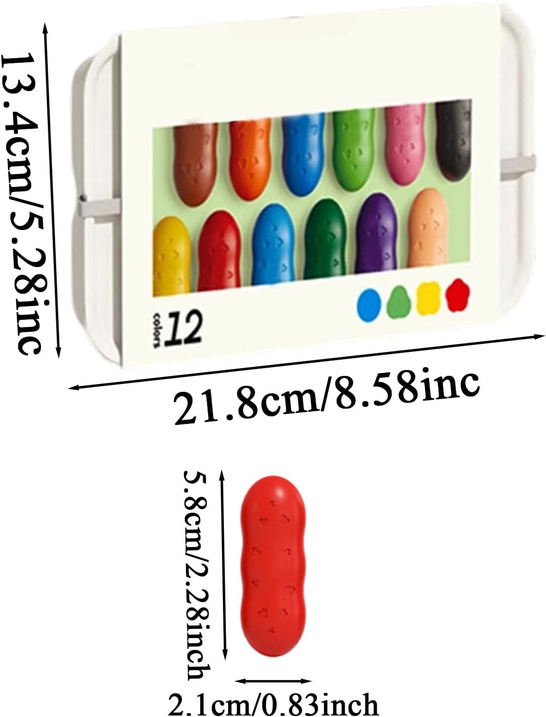 Forma distintiva di pisello: questi pastelli per bambini a forma di pisello in 12 colori vivaci catturano l'interesse dei bambini ispirando la loro creatività e guidandoli a scoprire l'affascinante mondo dei colori senza sforzo Semplici da pulire: i genitori apprezzano questi pastelli per bambini progettati per una facile pulizia, consentendo loro di pulire o sciacquare via i segni senza sforzo senza preoccuparsi di sporco o macchie Design ergonomico: con superfici lisce e arrotondate, questi pastelli sono progettati per adattarsi comodamente alle piccole mani dei bambini senza bordi o angoli ruvidi. Ogni dettaglio è accuratamente lucidato per la sicurezza Comodo da trasportare: i pastelli piccoli e leggeri per bambini garantiscono una portabilità senza sforzo, consentendo ai genitori di trasportarli facilmente durante i viaggi o le attività all'aperto, sostenendo la creatività in movimento Ottimo regalo: progettati per compleanni, Natale e festa dei bambini, questi pastelli per bambini si rivolgono a ragazzi e ragazze, offrendo un modo significativo per incoraggiare la creatività e l'espressione di sé attraverso attività di disegno coinvolgenti perfette per ogni occasione speciale