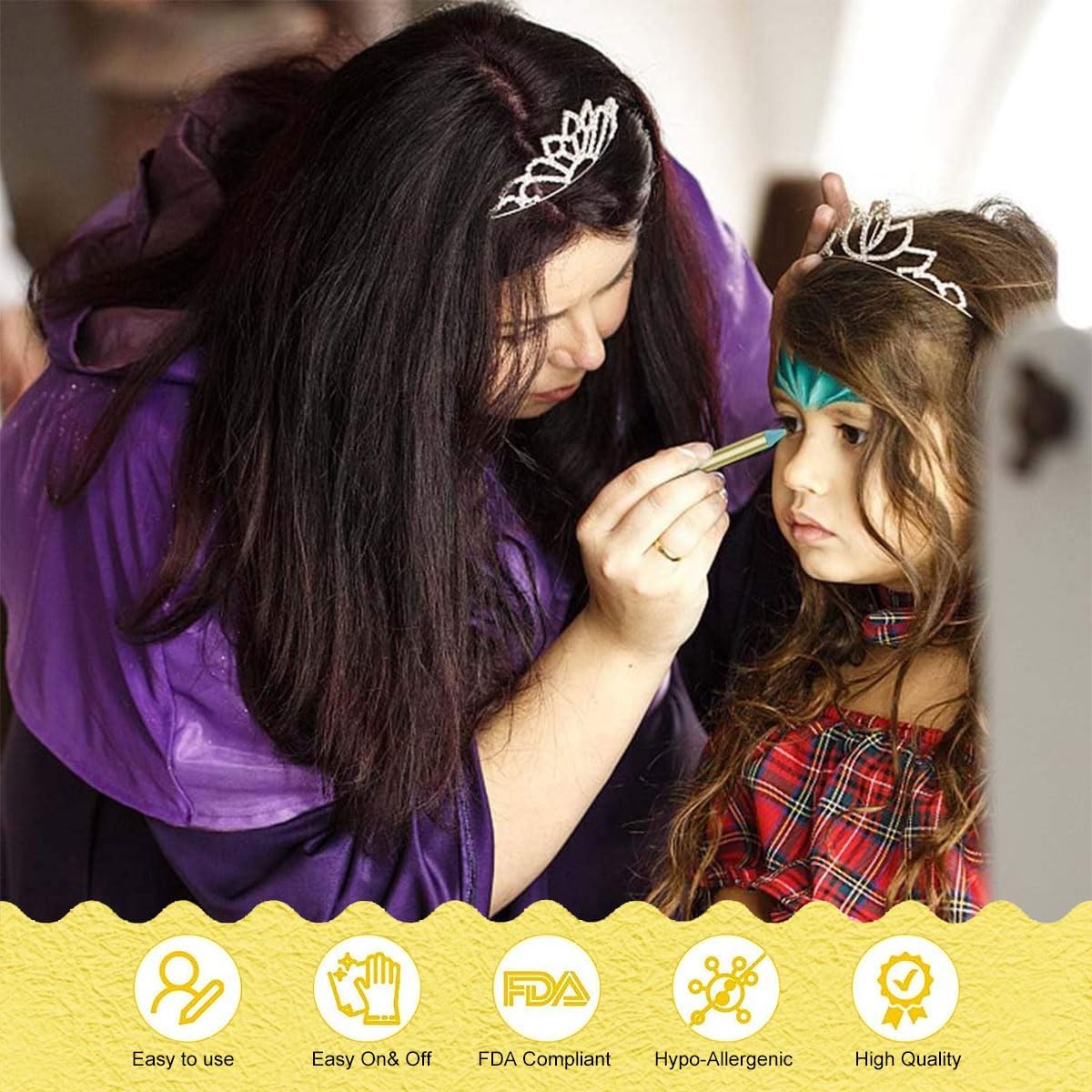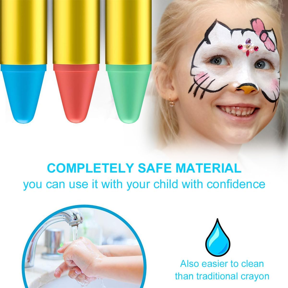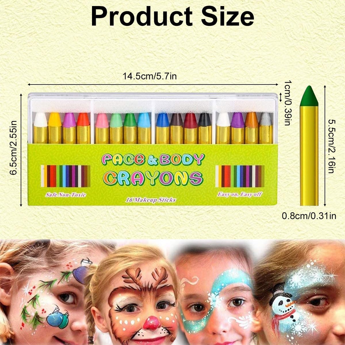Sicurezza per i bambini: la nostra matita sicura per la pittura per il viso è atossica e progettata per bambini, bambini con pelle sensibile. Poiché la pelle di ognuno è diversa, si consiglia di eseguire un piccolo patch test prima dell'uso. Facile da colorare e pulire: non preoccuparti se queste matite per pittura per il viso possono macchiare le mani o i vestiti, quando vuoi rimuovere il colore del viso, puliscile con un tovagliolo di carta per rimuovere la maggior parte della vernice, quindi lavale con sapone e acqua tiepida. Truccabimbi multifunzionale per bambini: questo set di matite per trucco per bambini da 16 colori è perfetto per feste o eventi per bambini come feste di compleanno, pittura natalizia, carnevali, eventi sportivi, giochi di ruolo, ecc. Il regalo creativo perfetto: queste matite colorate per trucco artistico stimolano l'immaginazione dei bambini e offrono il divertimento di essere creativi per aggiungere bellissimi colori al mondo di tuo figlio. 16 colori di pittura per il viso: 16 colori tra cui scegliere, una varietà di colori e matite colorate vivaci ti consentono di creare il tuo lavoro sul viso ideale. I giochi con la matita per il viso aiutano i bambini a sviluppare un'immaginazione illimitata e capacità di colorare.