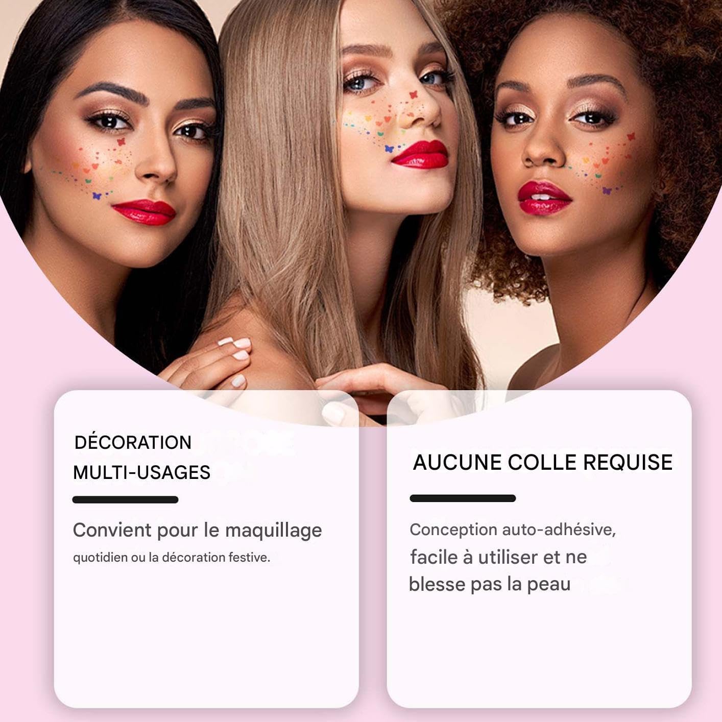 Fissaggio resistente: texture sfumata conservata grazie all'esclusiva tecnologia di fissaggio dei colori antiscolorimento, blocca la penetrazione di sudore e acqua per un trucco perfetto tutto il giorno. Bellezza Adattabile: ottimizza la tua routine di bellezza con queste toppe progettate per esaltare il tuo fascino e consentire un trucco a strati veloce, ideale per trasformazioni espresse per una serata fuori. Innovazione senza colla: Dotate di una rivoluzionaria tecnologia pastosa, queste patch trucco rimuovono definitivamente la fase della colla, trasformando l'applicazione in un gesto rapido e senza fatica Adattabilità: Dai festival alle celebrazioni e serate a tema, questi adesivi cosmetici si adattano perfettamente all'umore, esaltando il tuo aspetto in vivaci occasioni sociali con un'applicazione rapida. Aderenza confortevole: tecnologia adesiva ipoallergenica per un morbido e sicuro. Vestibilità impercettibile adatta a tipi di pelle, anche reattive, senza rischio di irritazione.