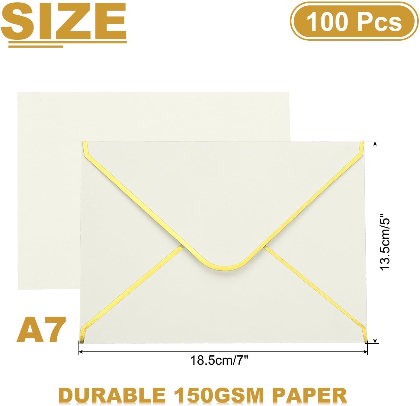 Materiale Carta Resistente 150gsm: Le nostre buste 5x7 hanno una superficie liscia e un colore vivace per attirare l'attenzione e aggiungere eleganza, sono anche più spesse, robuste e resistenti. Riceverai 100 pezzi di buste per diversi usi, come inviti o spedizioni. BORDO ORO LUSSUSO - Il bordo in foglia oro delle nostre buste è davvero qualcosa di cui parlare. Il design a aletta V aggiunge un tocco di fascino e sofisticatezza ad ogni evento, facendo risaltare i tuoi inviti dalla folla. Che tu stia inviando inviti di nozze o corrispondenza aziendale, queste buste lasceranno un'impressione duratura. Sigillatura Forte: Il bordo è progettato con aletta gommata. Aggiungi un po' d'acqua al bordo gommato, premi per alcuni secondi, e le buste saranno perfettamente sigillate per proteggere la tua privacy. Progetti Fai Da Te: Scegli il motivo che preferisci, stampalo sulla busta con una stampante, o decorala con fiori secchi, adesivi e francobolli per personalizzare una busta unica e personalizzata. Applicazione: Aspetto raffinato e buona qualità, le nostre buste si distinguono. Ampiamente utilizzate per biglietti di auguri, inviti di nozze, inviti per feste di compleanno, laurea, cartoline, foto, lettere, spedizioni, ecc. Ideali per esprimere i tuoi ringraziamenti o inviti a feste, come Natale, Ringraziamento e altre festività.