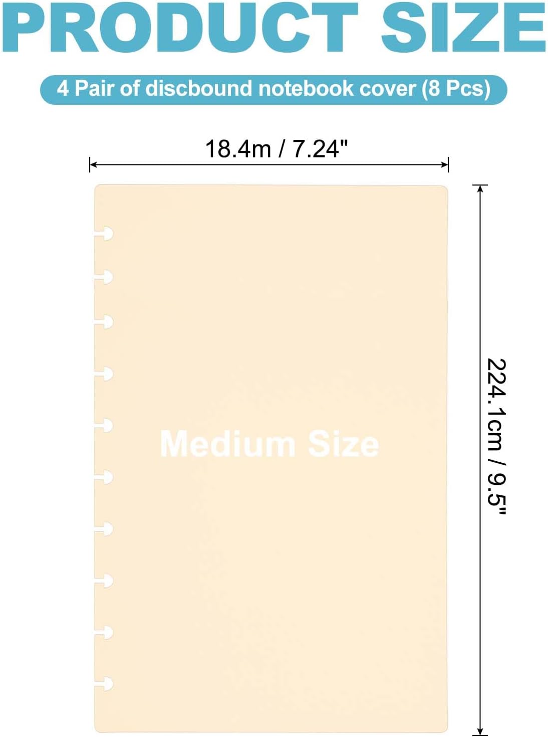 Materiale: PP; Colore: Beige; Dimensione: Media 18.4 x 24.1cm / 7.24 x 9.5inch; Lista Imballaggio: 4 Coppie di copertine per quaderno discbound (8pz) Vantaggio: Le nostre copertine per quaderni discbound sono realizzate in polipropilene spesso, altamente resistente e duraturo, che può proteggere efficacemente i tuoi appunti da usura e strappi. Ogni copertina ha angoli arrotondati lisci sui bordi non perforati (in alto a destra e in basso) Istruzione: Adatto per quaderno Arc e Happy Planner, quaderno discbound Applicazione: Queste copertine per quaderni discbound sono principalmente utilizzate per proteggere quaderni e planner discbound. Hanno un aspetto sofisticato e alla moda, che può trasformare i tuoi quaderni in un accessorio di moda accattivante Nota: La confezione contiene solo la copertina, non include i dischi e la carta. Si prega di scegliere la dimensione appropriata al momento dell'acquisto